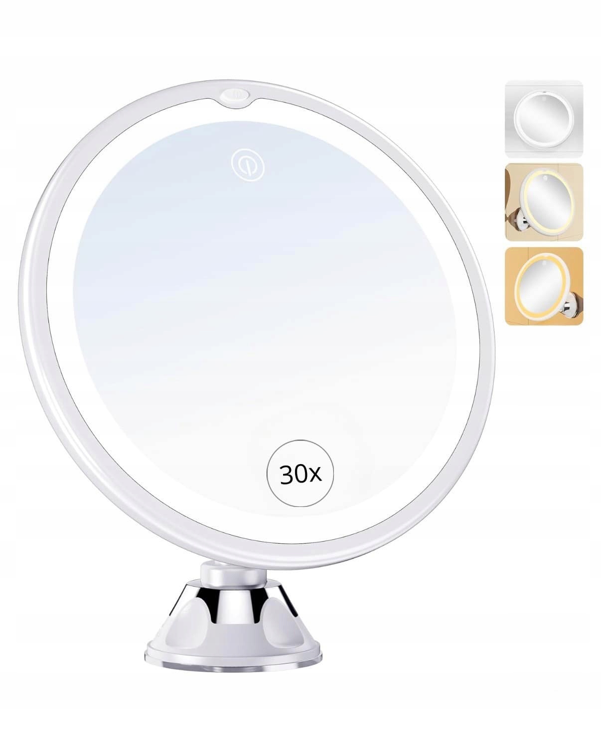 Зеркало с подсветкой Auxmir 30X — это компактное косметическое зеркало, перезаряжаемое через USB, с увеличением до 30x и тремя режимами светодиодной подсветки.