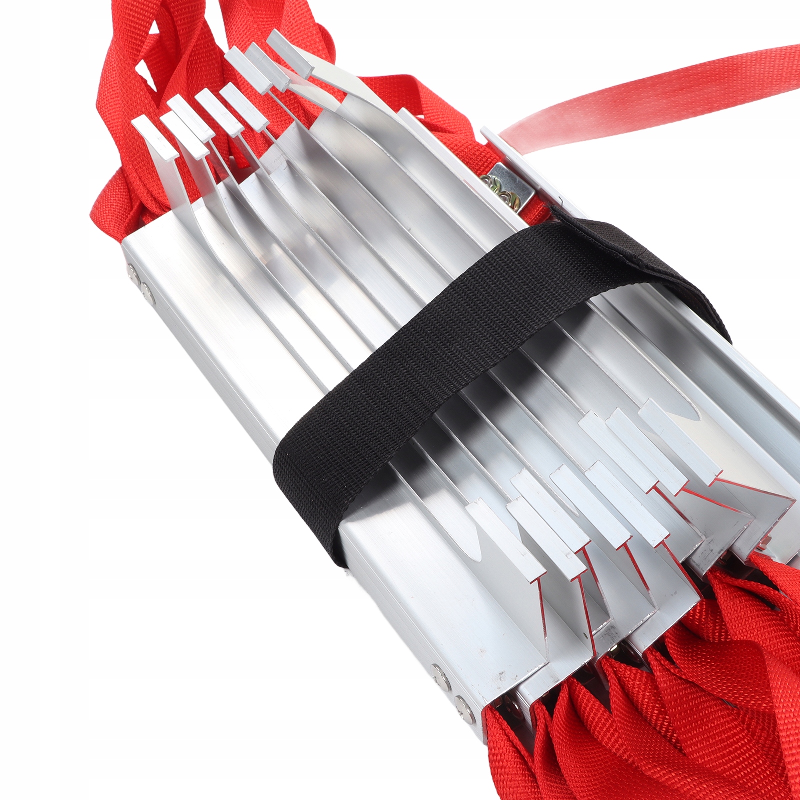 1. Надежное крепление: стальной крюк с центральным V-образным кронштейном позволяет надежно закрепить эвакуационную лестницу на оконной раме, не допуская ее соскальзывания. 2. Для 3 этажей: максимальная высота спасательной лестницы составляет 7,5 метра, что соответствует 3 этажам. 3. Противоскользящие: лестница аварийного выхода имеет широкие нескользящие ступени, позволяющие уверенно ступать. 4. Экономия места: веревочную лестницу можно полностью сложить, чтобы сэкономить место, и ее можно легко хранить под кроватью или в шкафу у окна. 5. Материал из алюминиевого сплава: эвакуационная лестница гибкая и прочная, изготовлена из алюминиевого сплава, легкая и прочная, ее можно безопасно использовать.