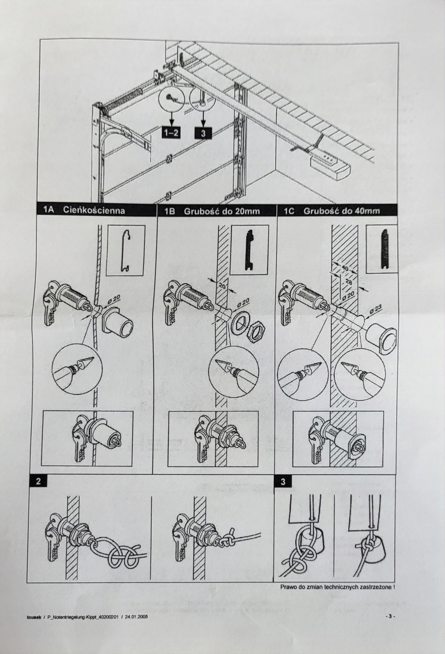АВАРИЙНАЯ РАЗБЛОКИРОВКА ПРИВОДОВ ОТКРЫТИЯ И СЕКЦИОННЫХ ГАРАЖНЫХ ВОРОТ