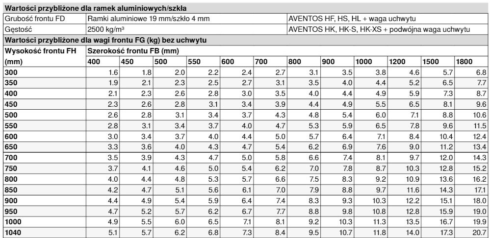 ниже вспомогательных таблиц для расчета веса фронта.