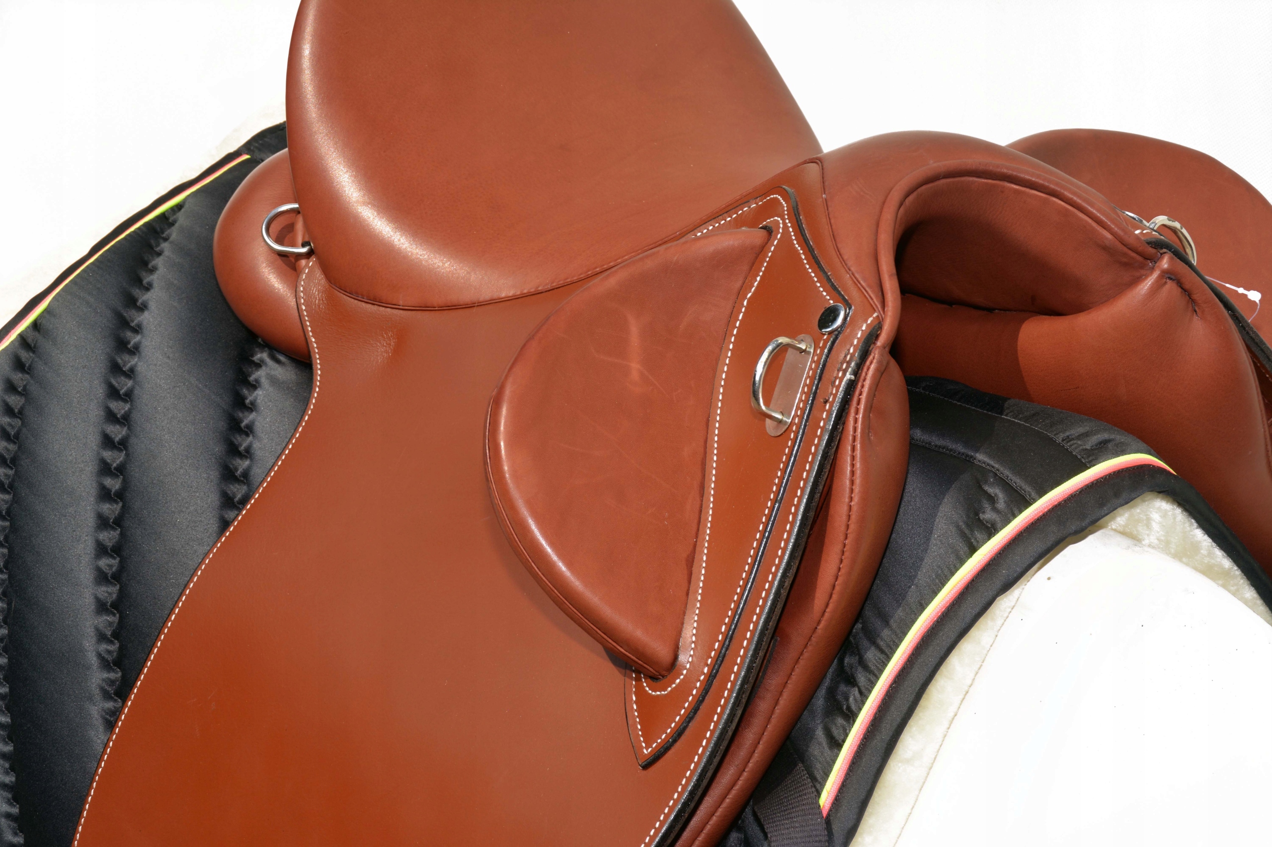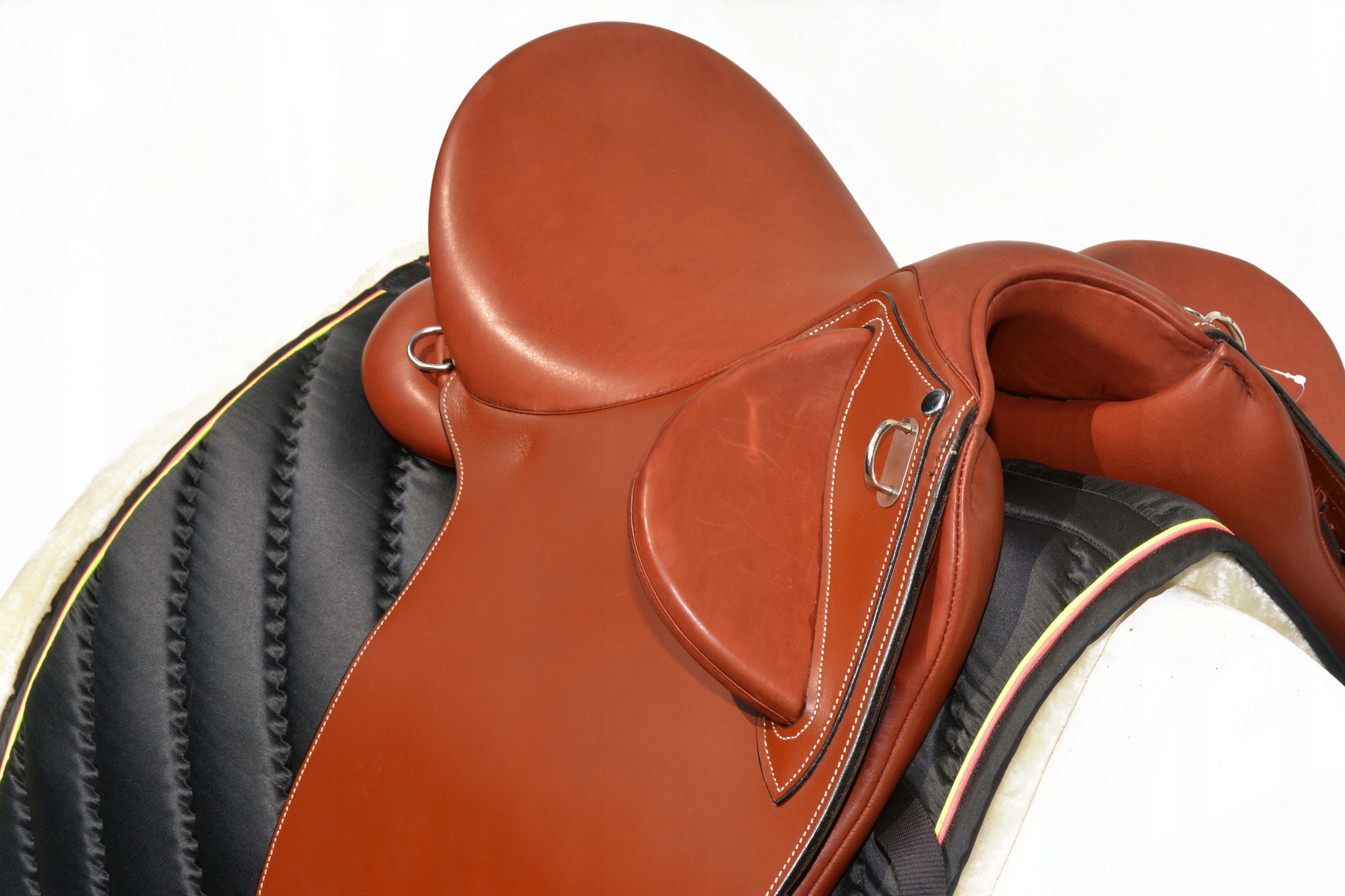 Австралийское седло 17,5 C. Седло полностью изготовлено из натуральной кожи очень хорошего качества. Седло очень легкое.Сделано на шорной фабрике в Италии.Имеет глубокое, мягкое сиденье.Благодаря хорошо профилированным коленным блокам и хорошему балансу в седле легко поддерживать правильную и правильную осанку на лошади. , и передние лопатки, которые удерживают всадника, выпасть из этого седла практически невозможно. Гибкая елка обеспечивает высокий комфорт для всадника и лошади.