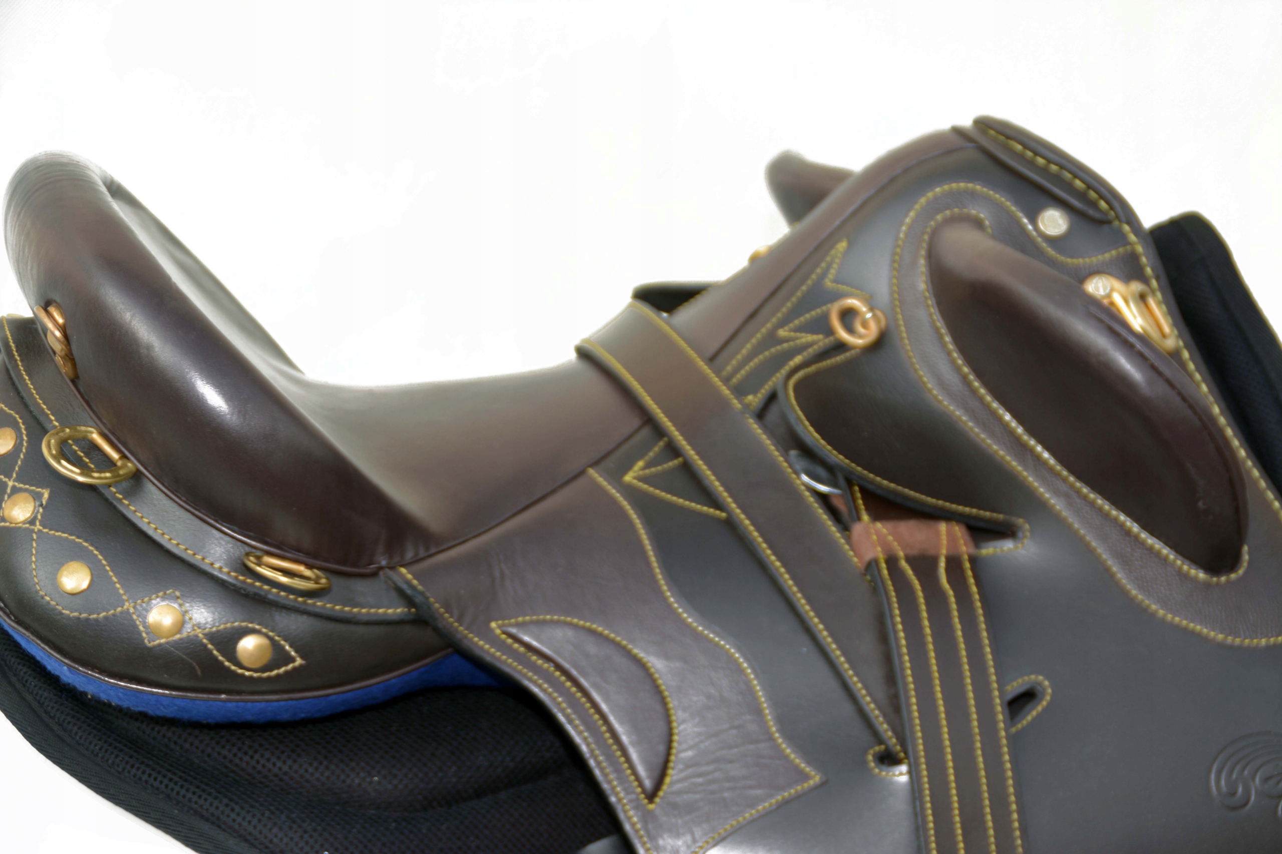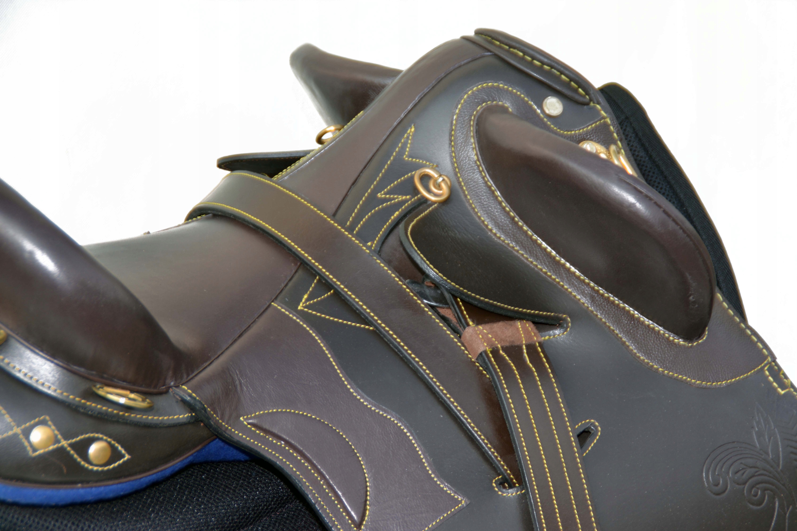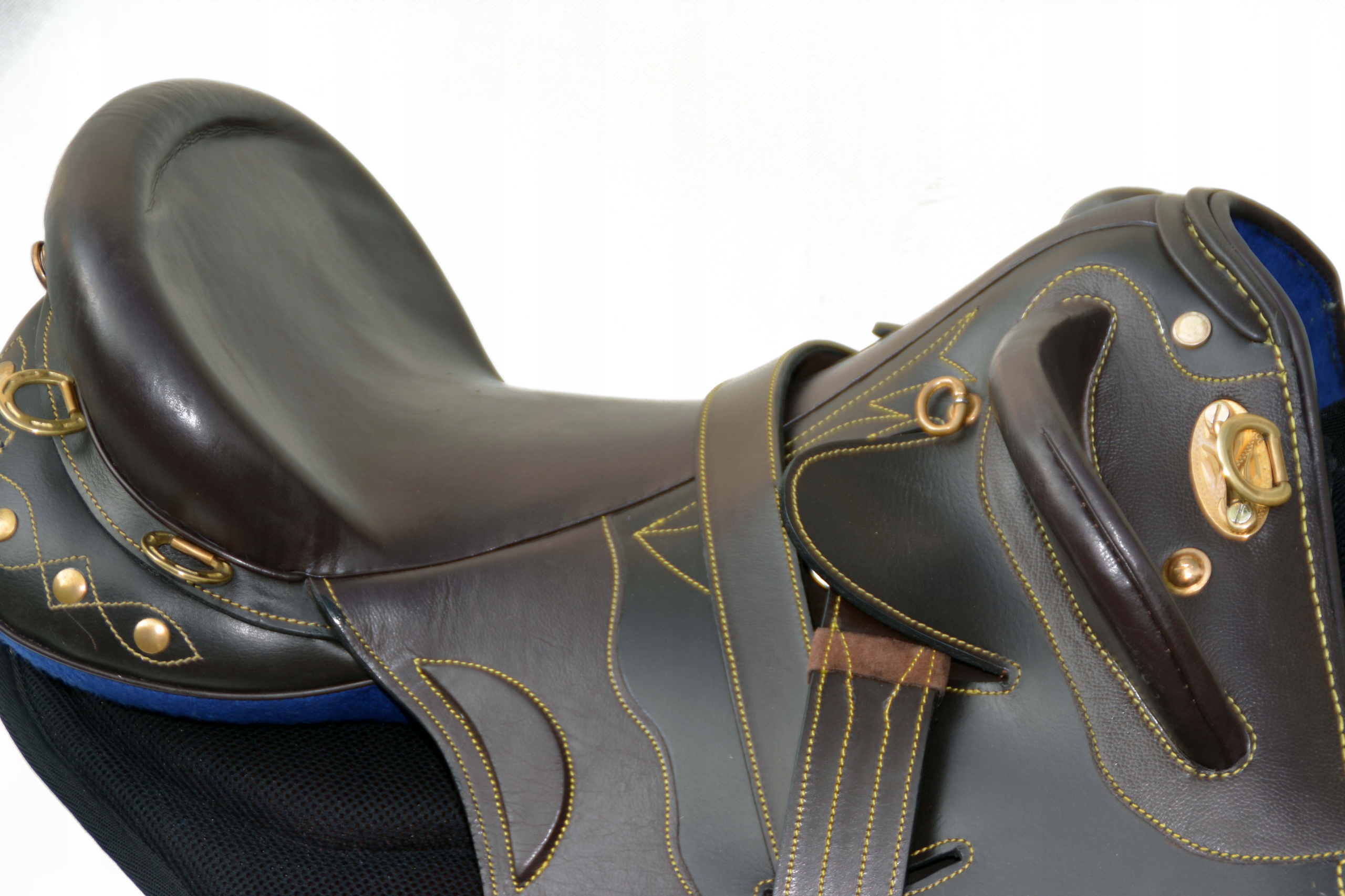 Австралийское седло 18 C.siodło, полностью изготовленное из очень хорошего зерновой кожи. Седло очень легкое. Проводится в отделе Римарски в Италии. Он имеет глубокое, мягко мягкое сиденье. Благодаря хорошим коленным блокам и хорошему балансу в седле легко поддерживать правильный и правильный силуэт на лошади, а также передние лезвия, которые удерживают наездника, практически невозможно упасть с этого седла. Гибкая Terlica обеспечивает высокий комфорт для езды и дона. Черное седло.