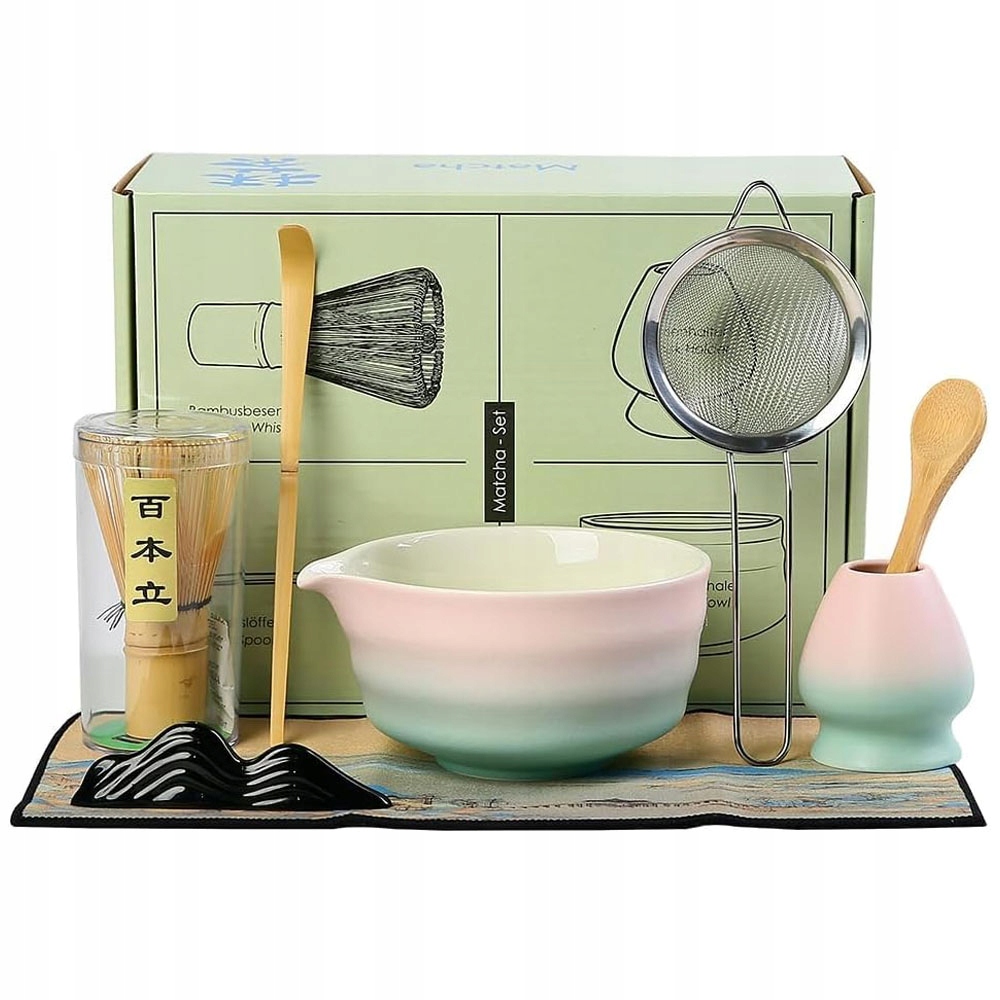 🌈🌈 - В комплект входят 1 миска, 1 подставка для венчика, 1 венчик, 1 ложка, 1 ситечко, 1 ложка, подставка для ложки и ткань, идеально подходящая для настоящего заваривания матча.