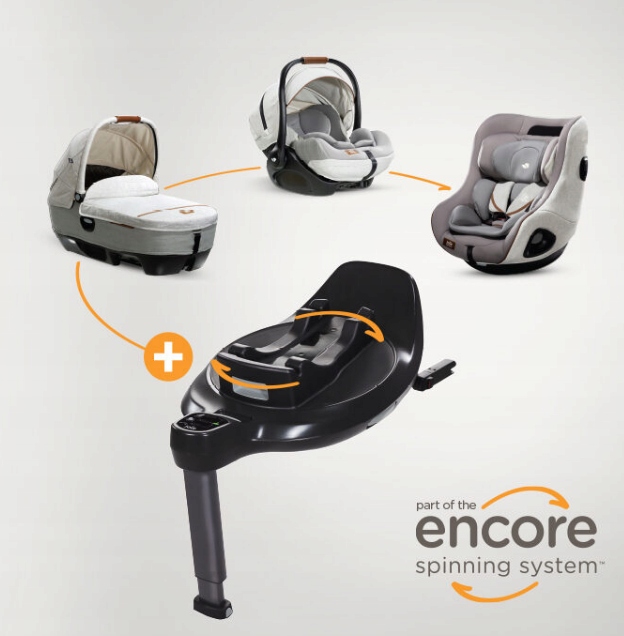 Encore Spinning System –революционная система вращения от Joie. Система растет вместе с вашим ребенком от рождения до 4 лет, и одна и та же база (I-Base Encore) совместима как с откидным сиденьем I-Level, гондолой Calmi R129, так и с сиденьем I-Harbour, предназначенным для пожилых людей. детей.