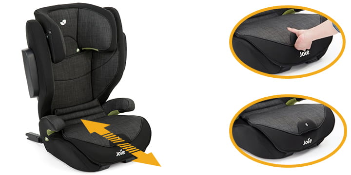 Нижняя часть сиденья выдвигается, обеспечивая оптимальную адаптацию к текущему росту ребенка, благодаря чему поясница всегда правильно поддерживается.