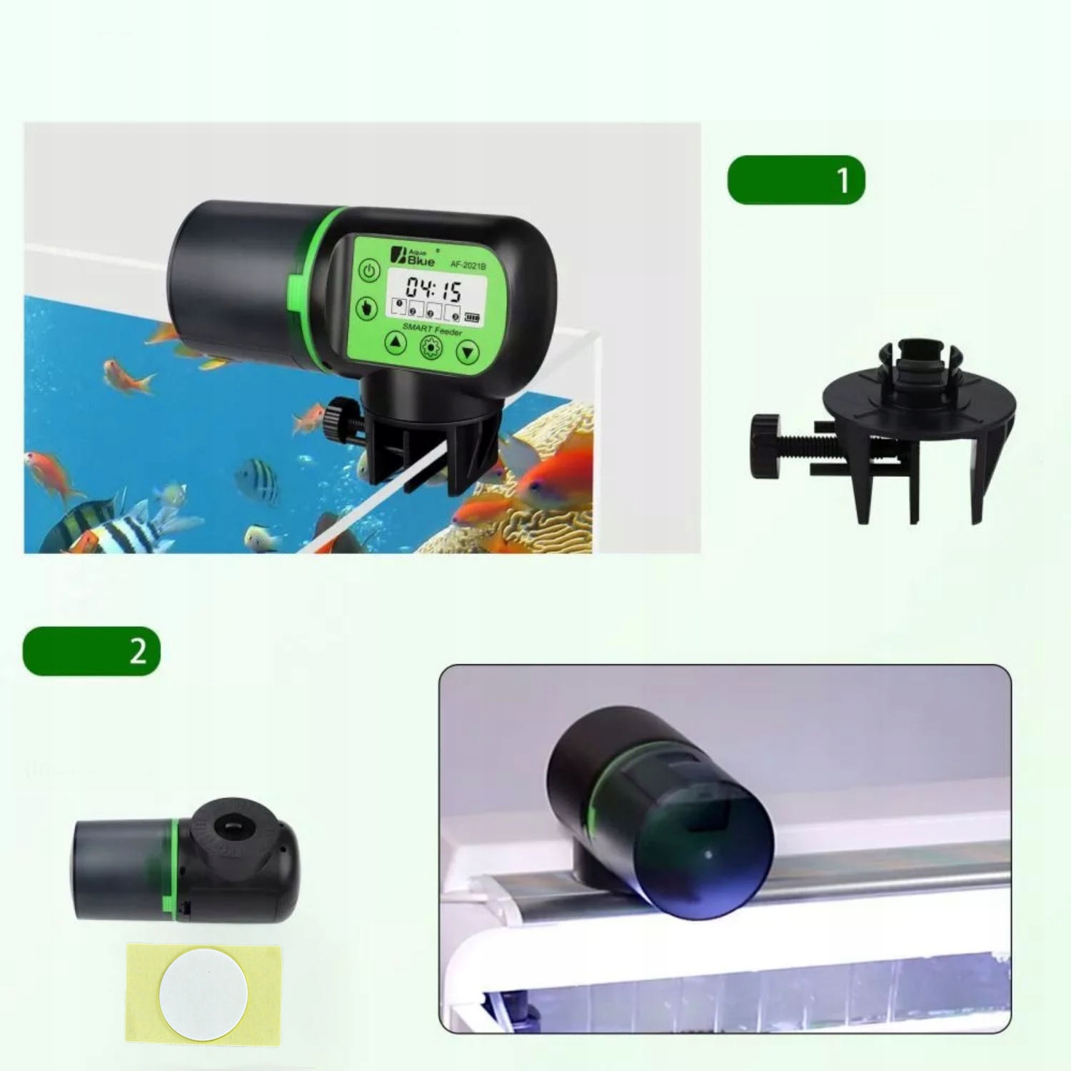 Автоматическая кормушка для аквариума большой емкости 200 мл подходит для различных типов корма для рыб в виде пластин, частиц, порошка, полосок и многого другого. Используйте ползунок, чтобы контролировать количество корма рыбы.