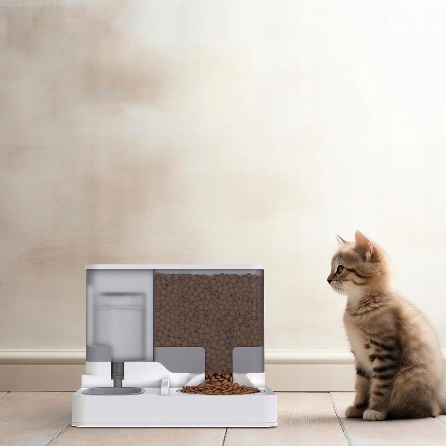 😽😽😽Автоматическая кормушка 2-в-1:Эта автоматическая кормушка сочетает в себе функции кормушки и поилки. Ведро для воды имеет емкость 1 литр, а контейнер для еды — примерно 2,8 литра, поэтому и вода, и продукты остаются свежими. Она удовлетворяет ежедневные потребности вашего питомца в питании и может использоваться как дома, так и на открытом воздухе.