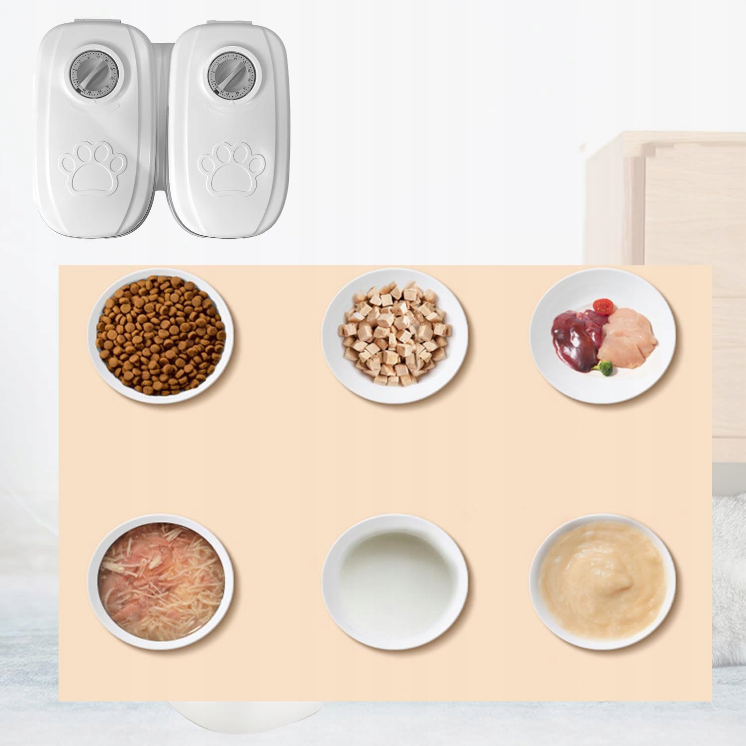 🍃【 Последний и безопасный материал. Он содержит BPA, является безопасным и надежным, долговечным и легким, устойчивым к износу. 350 мл еда. Благодаря этой двойной пищевой системе вы можете приготовить два отдельных блюда, что идеально, если у вашего животного есть специальные потребности в питании или если у вас есть несколько домашних животных. Внизу дозатора пищи находится камера, в которой вы можете разместить упаковку со льдом, чтобы поддерживать свежесть пищи. Благодаря этому вашему питомцу будет наслаждаться свежей, вкусной едой, без него. , нет). Легко чистить. Просто используйте немного мыла для мытья или мытья в посудомоечной машине, и оно будет чистым без особой работы. Это особенно полезно, чтобы обеспечить вашему питомцу правильное количество пищи, чтобы обеспечить здоровое питание