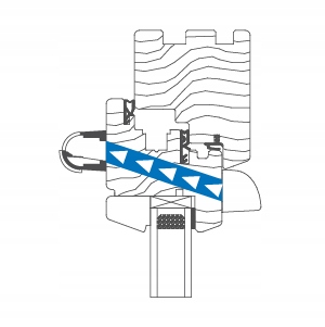 Вентиляционные клапаны AMO являются саморегулирующимися. Количество подаваемого воздуха зависит от разницы давления снаружи и внутри помещения. Это происходит до уровня перепада давления, при котором эффективность диффузора достигает максимального значения. Продолжая подниматься, крылья отклоняются, ограничивая количество подаваемого воздуха. Такая ситуация может быть вызвана, например, порывом ветра. Пользователь может закрыть заслонку, ограничив поток воздуха до минимума.