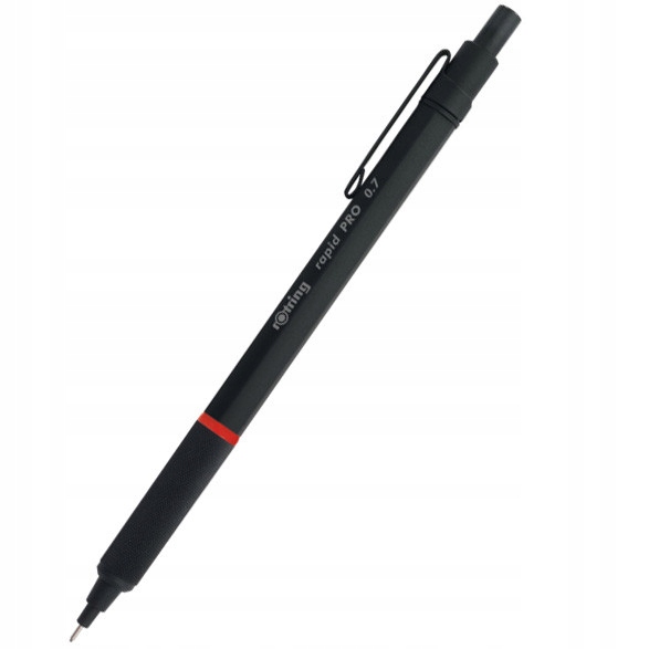 Высококачественный, точный Rapid Pro автоматический карандаш. Этот металлический карандаш был создан для профессионалов. Это будет идеально подходит для рисования, письма, рисования и набросков. Он имеет прочный и твердый, шестиугольный корпус и текстурированную ручку, чтобы предотвратить скольжение карандаша во время работы. Механизм амортизации позволяет рисовать, не беспокоясь о растрескивании стилуса во время большего давления. Карандаш также содержит металлический клип и упругой скрытый под SKU. Благодаря этому вы можете быстро внести любые исправления в созданном рисунке. Хромированный наконечник позволяет создавать чертежи, используя шаблоны рисования. Серия Rapid Pro предлагает широкий выбор диаметра стилуса, предоставляя художникам широкий выбор в зависимости от природы созданной работы.