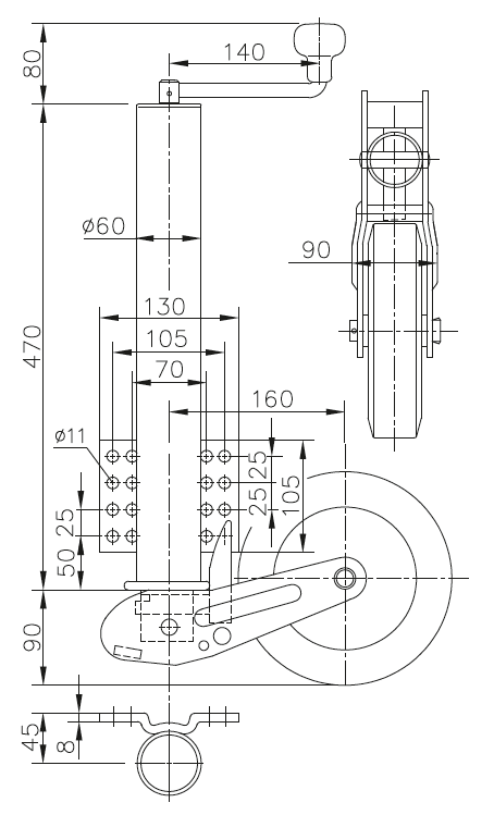Автоматичне опорне колесо VK 60-KH-200 Winterhof
