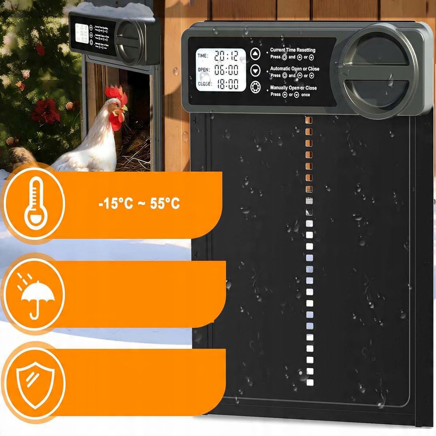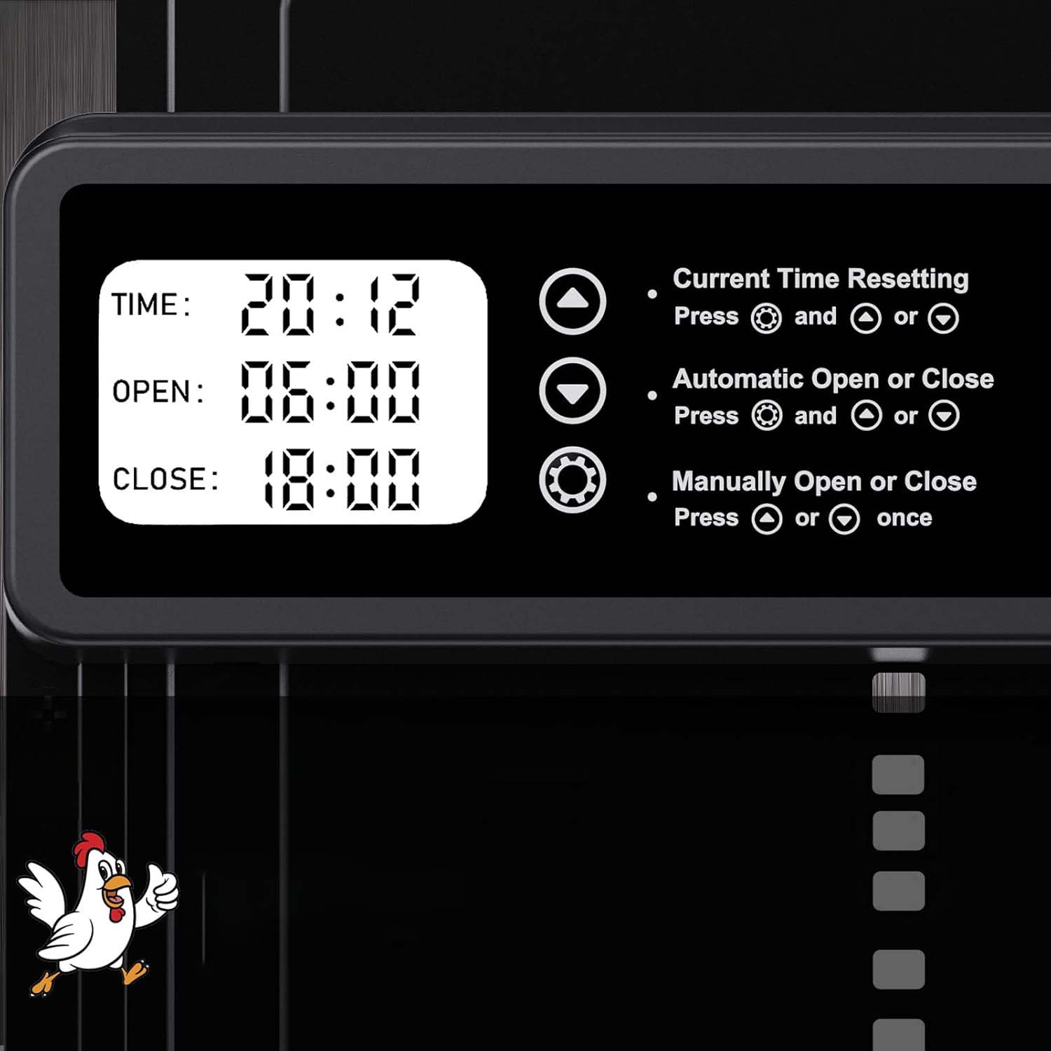 Простая конфигурация : автоматические двери курятника оборудованы интегрированным ЖК -экраном, который позволяет легко и точная регулировка времени открытия и закрытия. Установка проста и может быть сделана всего за 10 минут без сложной электрической установки.