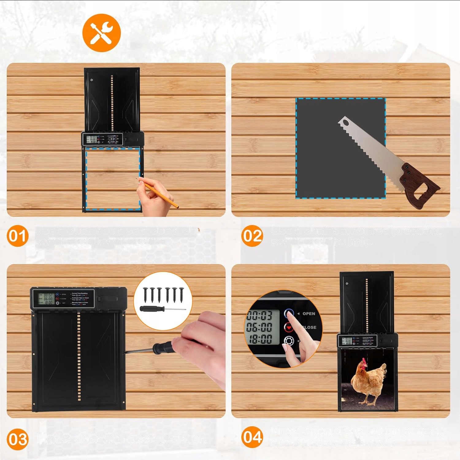 - изготовленный из высококачественного алюминия, устойчив к коррозии и погодным условиям и может надежно работать при температуре от -15 ° C до 55 ° C, обеспечивая оптимальную защиту цыплят. (Примечание: в случае мороза и льда дождитесь таяния льда, прежде чем открыть или закрыть дверь).