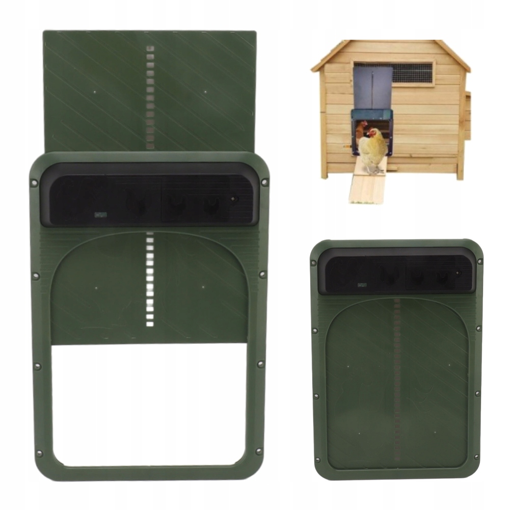 1. Пластик: Дверь курятника изготовлена из высококачественного пластика, который безопасен и долговечен, легок и удобен в использовании, не причиняя вреда домашним животным.