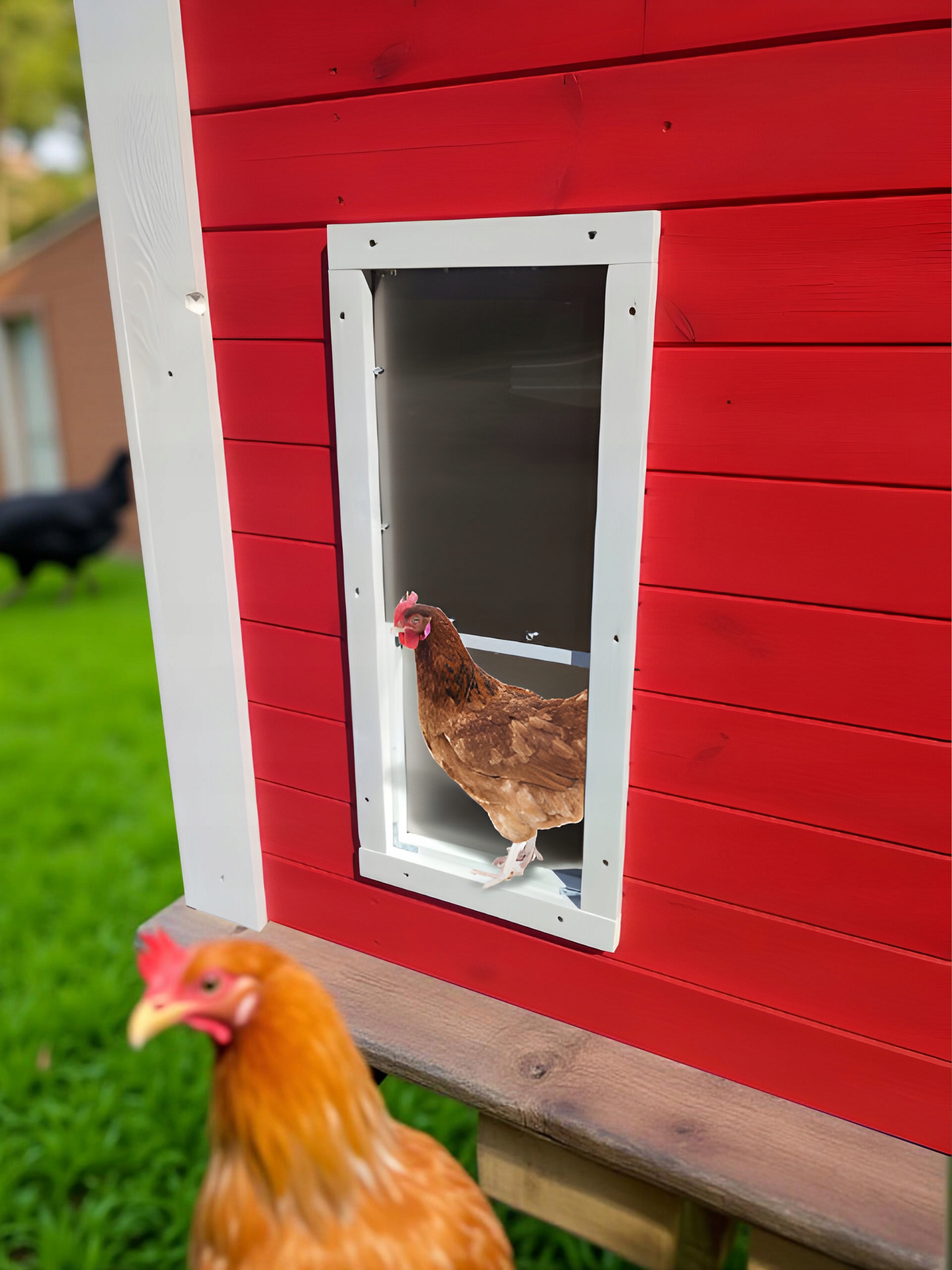 Автоматические двери для курятника из нержавеющей стали и ПВХ до размера, основная версия с аналоговыми программистами.