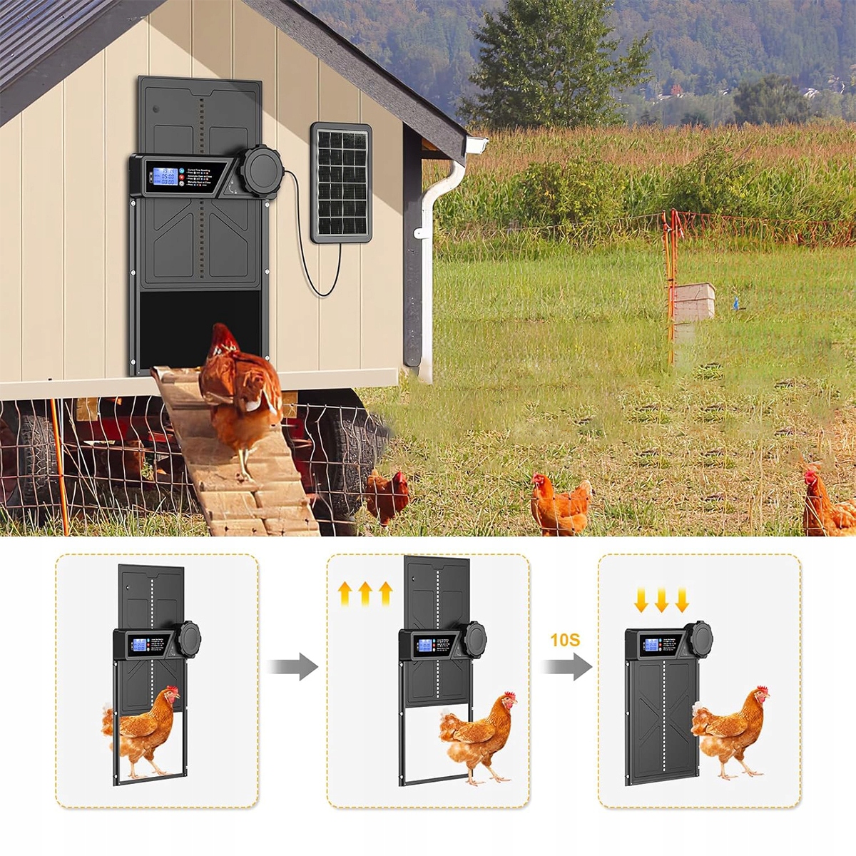 Черные автоматические двери в курятник сделаны из алюминия и пресса с водостойкостью IPX45, что позволяет им выдерживать плохую погоду, царапать птицу и вторжение естественных врагов, а также долгое время. Ручное управление и управление】 h1>