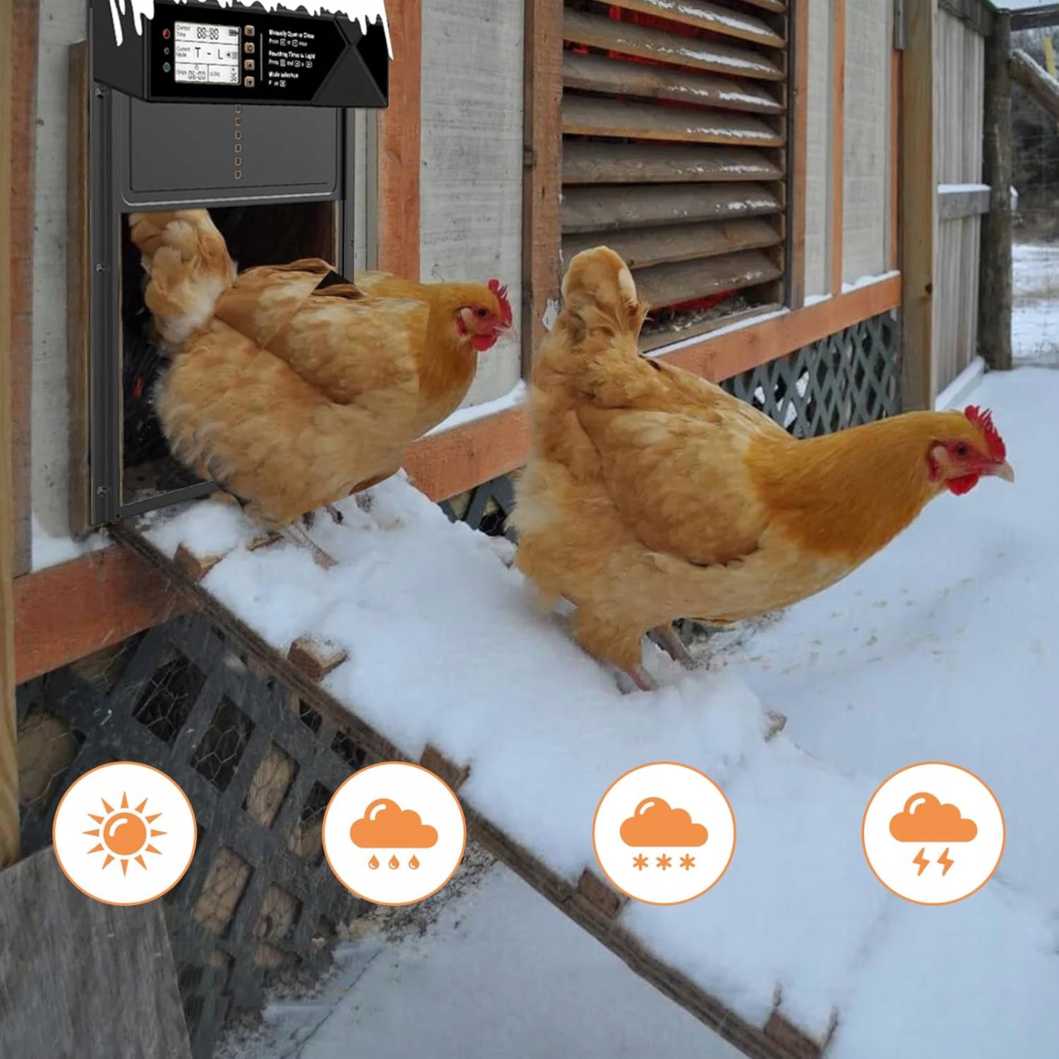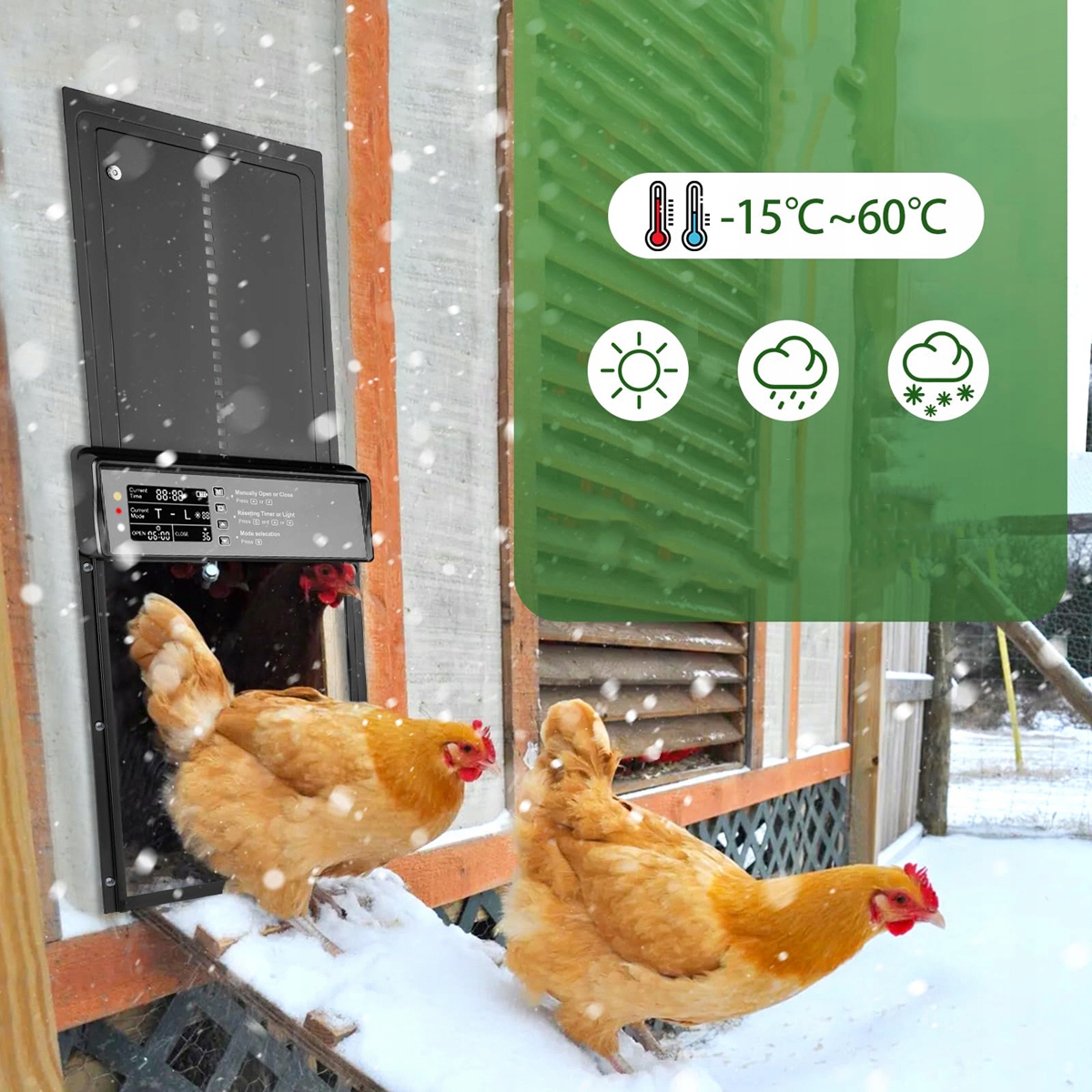 🐤wykonany z metalowej ramy i Stopu aluminum, wodoodpornyporny, wiatroszczelny Wytrzymały, Chroni drób przed atakami lisów, wilków, psów itp. обнаружено при открытии или закрытии двери и работает нормально после удаления препятствия.