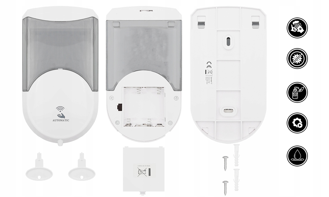 Не нужно прикасаться ни к каким кнопкам или клапанам, что предотвращает распространение бактерий и вирусов. Диспенсер легко крепится на стену и имеет контейнер объемом 550 мл, в который легко наполнить любимое мыло. Диспенсер работает от аккумулятора и имеет низкое энергопотребление. Дозатор изготовлен из качественного пластика, прочного и устойчивого к влаге. Дозатор имеет современный дизайн и впишется в любую ванную комнату.