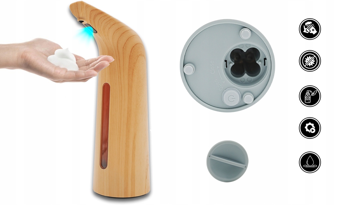 - Дозатор не нужно трогать рукой. , просто поднесите под него руку, и пенное мыло выделится в нужном для наших рук количестве.