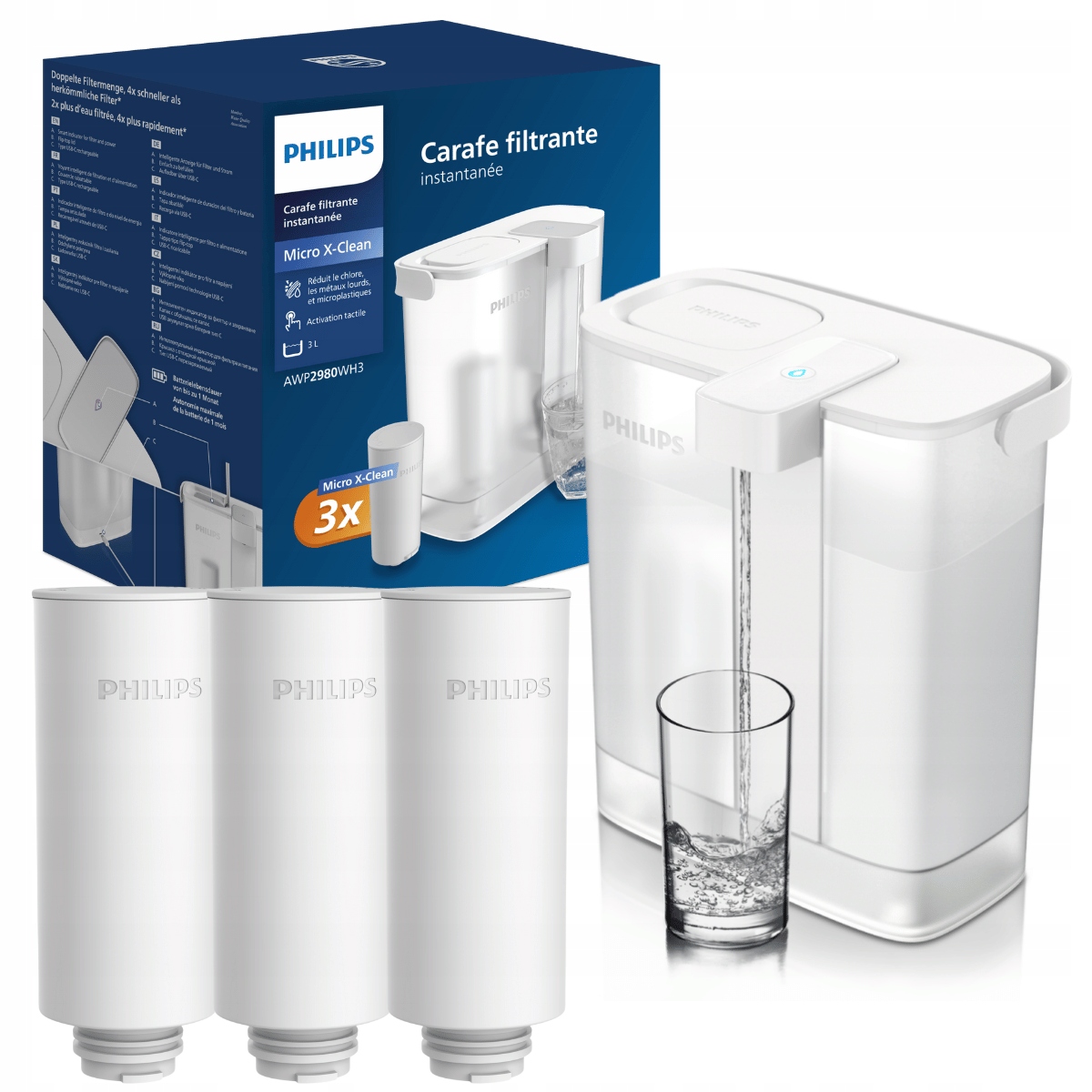 Фильтр автоматического фильтра Philips AWP2980WH3, USB C + 3 Фильтры