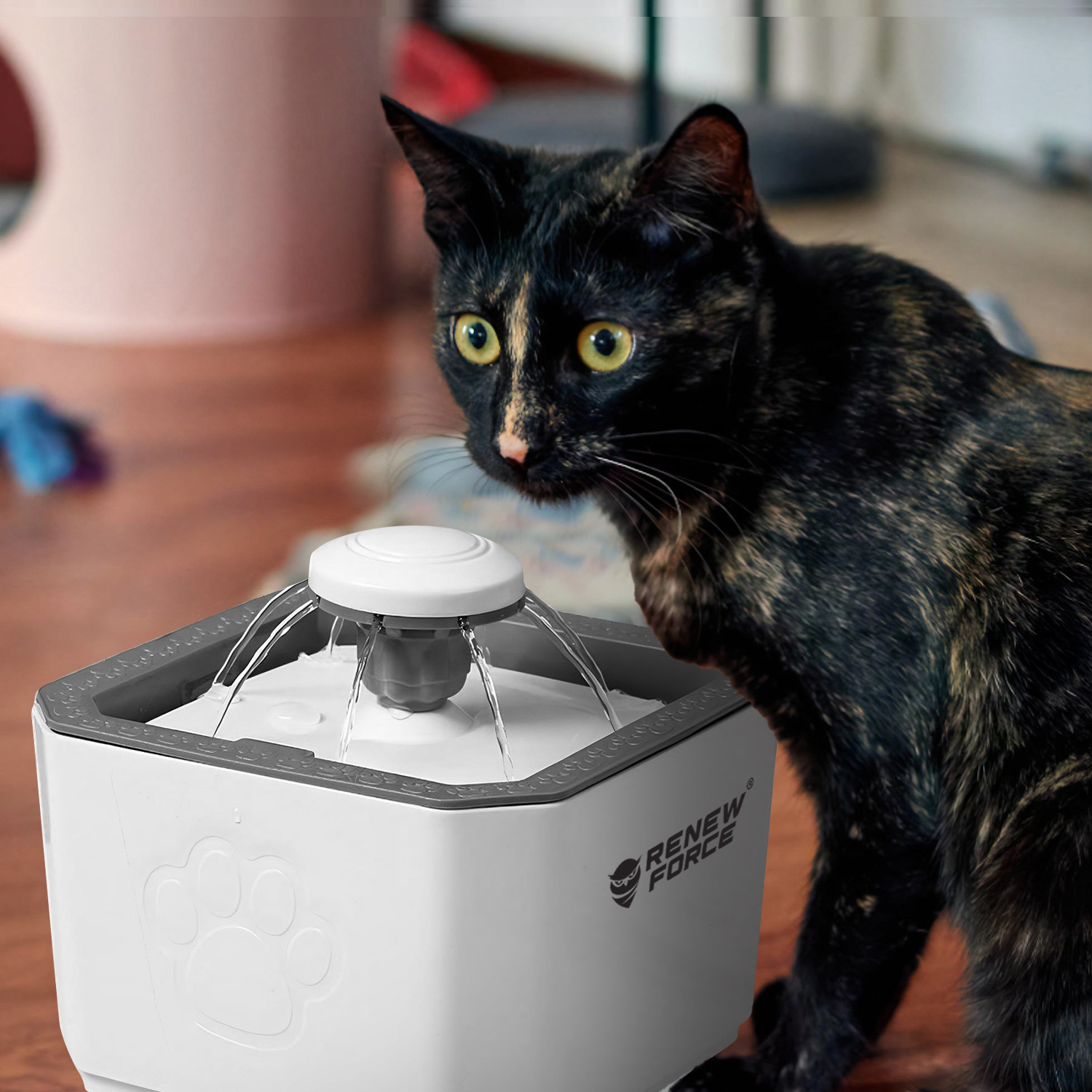 Вы можете сделать это! Поощряйте свою кошку пить воду, привлекая его внимание с помощью пузырящего фонтана. Подвижный поток пресной воды определенно не пропустит его охотничьи глаза!