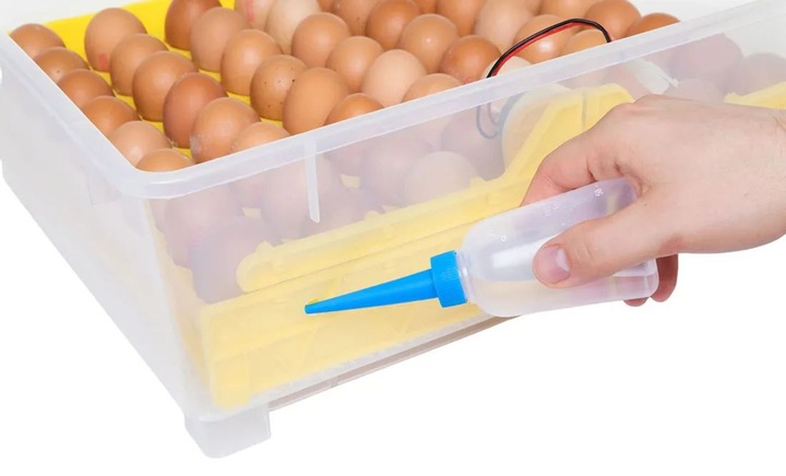 Чтобы поддерживать правильную влажность внутри инкубатора, необходимо доливать воду внутрь инкубатора. В комплект поставки входит БЕСПЛАТНЫЙ диспенсер для воды, облегчающий его применение.