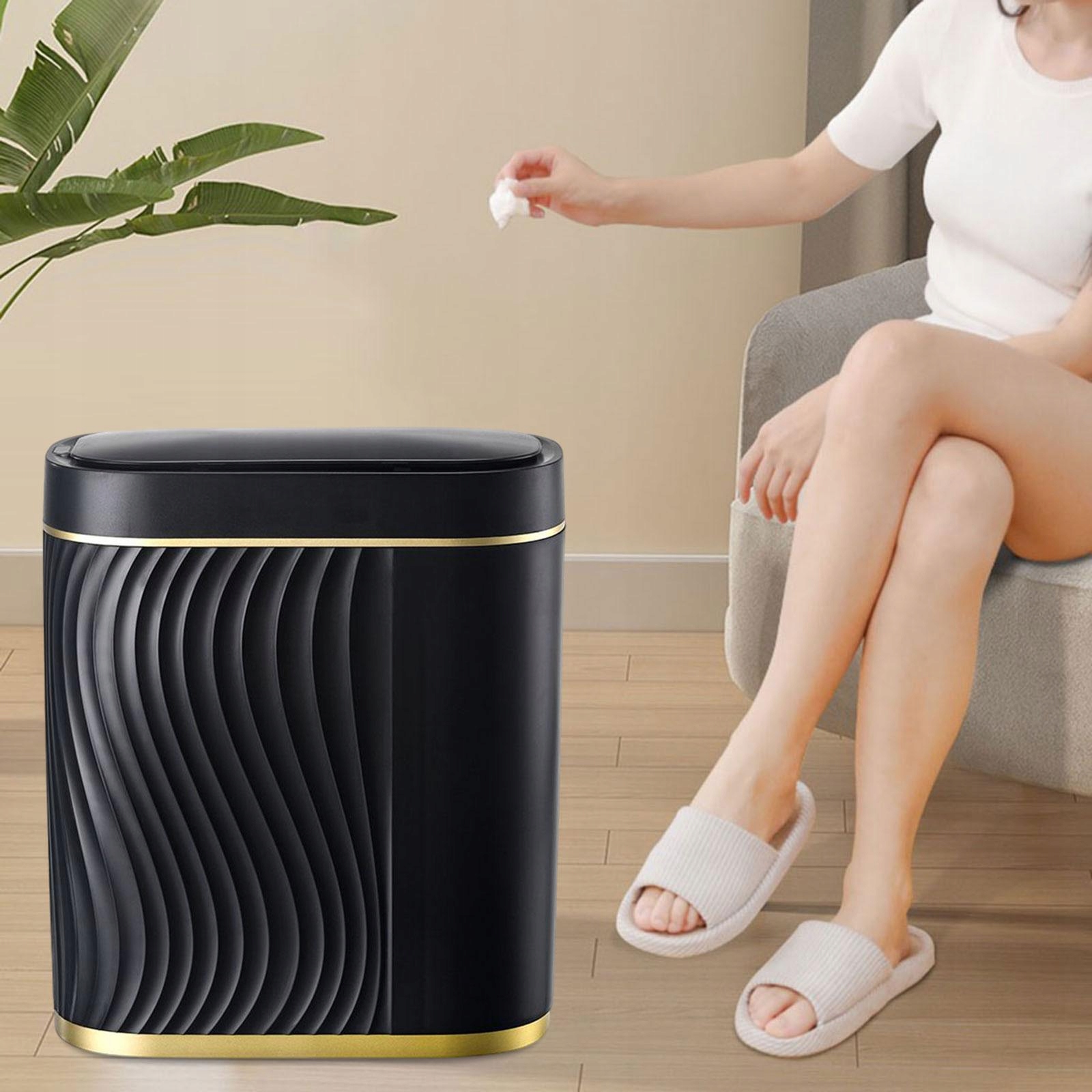 Интеллектуальная мусорная мусорная корзина Автоматическая не -контактная мусорная корзина для домашнего туалета в черном