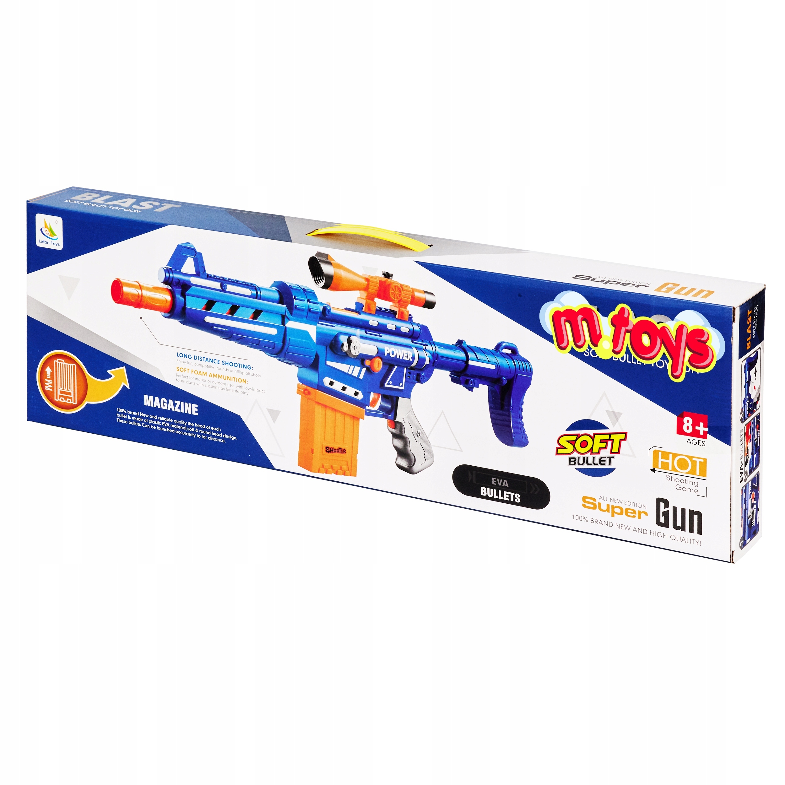 <ул>Пистолет имеет яркий и резкий синий цвет, привлекающий внимание.