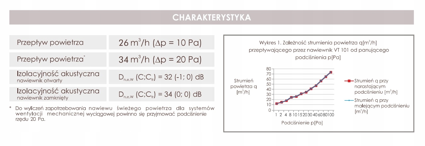 Количество подаваемого воздуха зависит от разницы давления снаружи и внутри помещения. Это происходит до уровня перепада давления, при котором эффективность диффузора достигает максимального значения. При повышении давления установленные внутри регулятора крылья отклоняются, ограничивая количество подаваемого наружного воздуха. Обычно это вызывает порыв ветра или сквозняк, т. е. повышенное давление. Автоматический воздухоотводчик можно открывать и закрывать вручную.