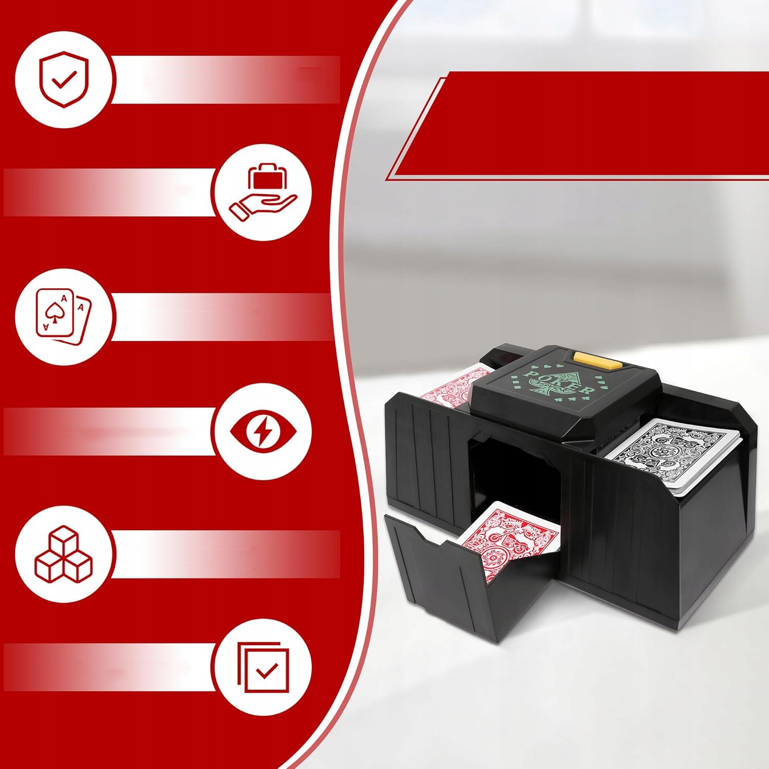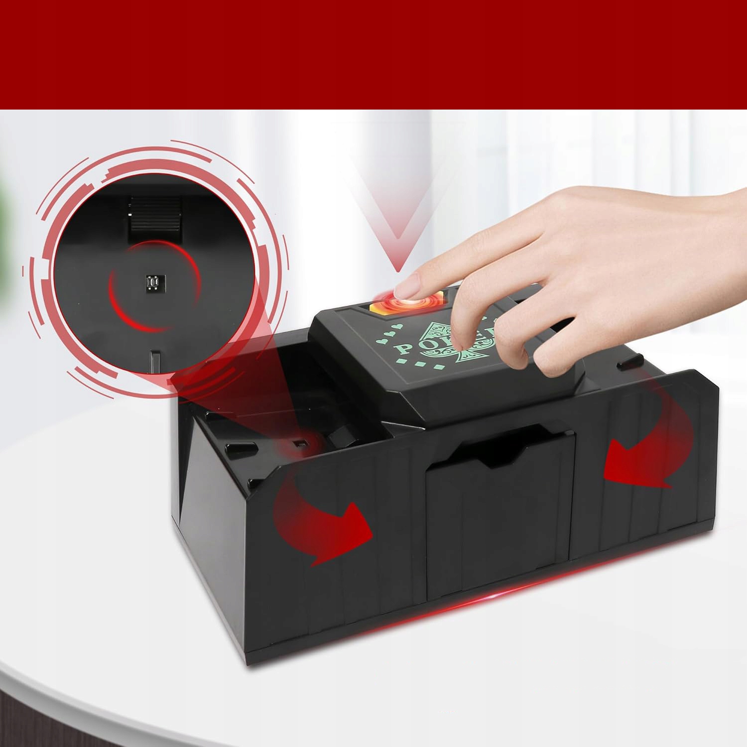 🃏【УПРАВЛЕНИЕ ОДНОЙ КНОПКОЙ】:Машина для перетасовки карт имеет простой запуск одной кнопкой, что позволяет быстро завершить перетасовку. Он также имеет функцию защиты от мошенничества, поддерживает одновременное перемешивание нескольких колод карт и повышает эффективность игры.