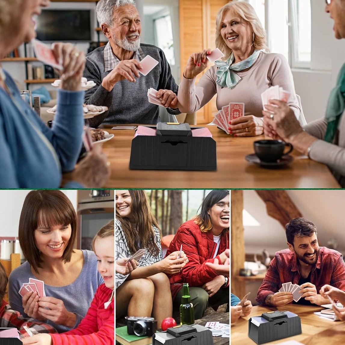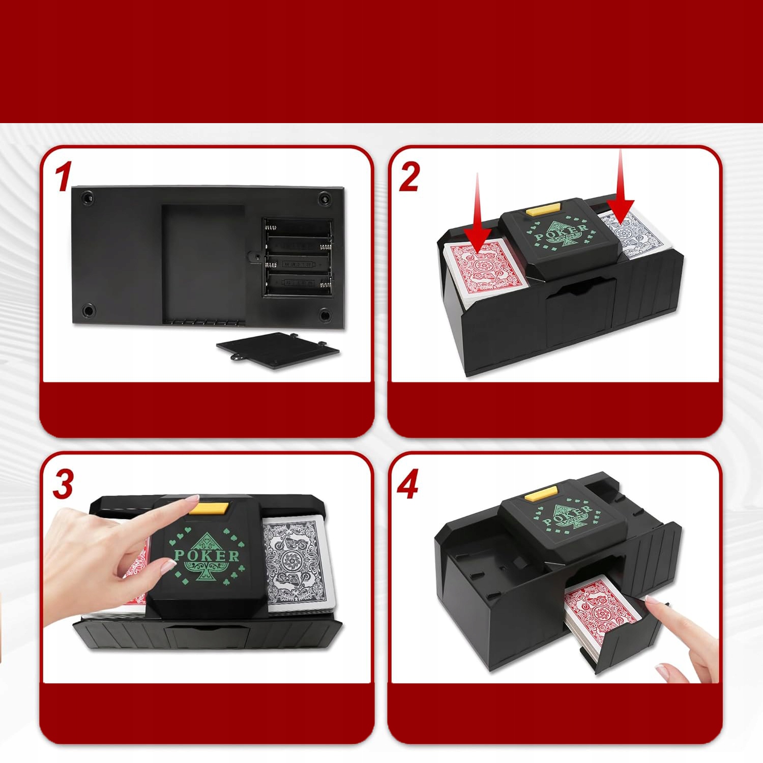 🃏【ШИРОКОЕ ПРИМЕНЕНИЕ】: Устройство для тасования покерных карт подходит для различных типов карт. Поскольку размер карты составляет менее 3,8*2,6 дюйма, ее можно идеально адаптировать к потребностям различных игр в покер.