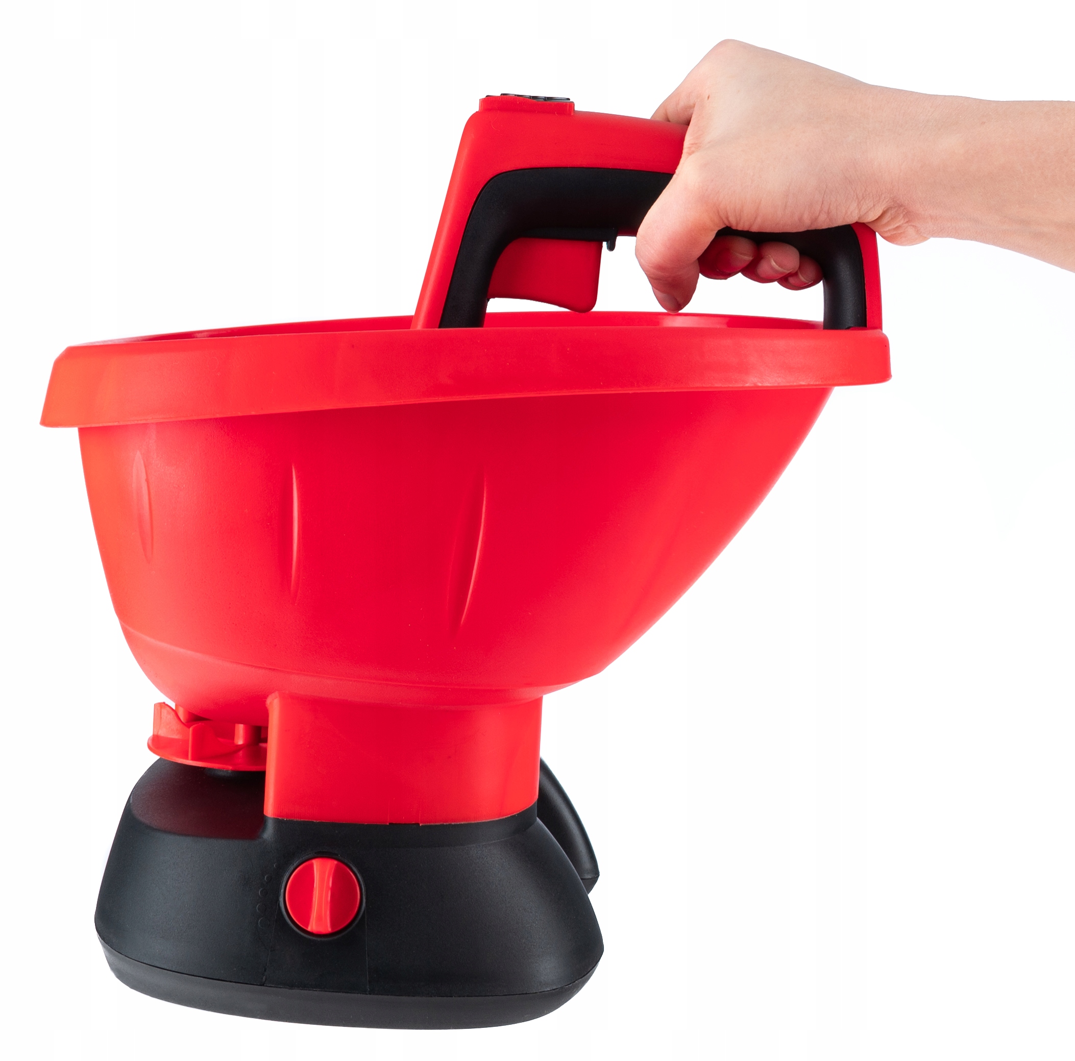 оснащен большим резервуаром, что позволяет вам установить до 2,5 литров материала. Распространение семян, песок, удобрения, соль и другие материалы.