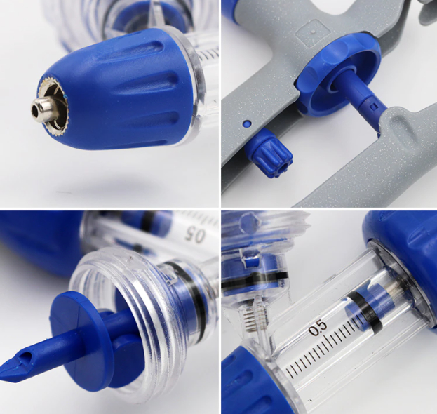 Шприц отличается высокой точностью дозирования , что делает его пригодным для вакцинации голубей, а также других животных, таких как свиньи или домашняя птица.