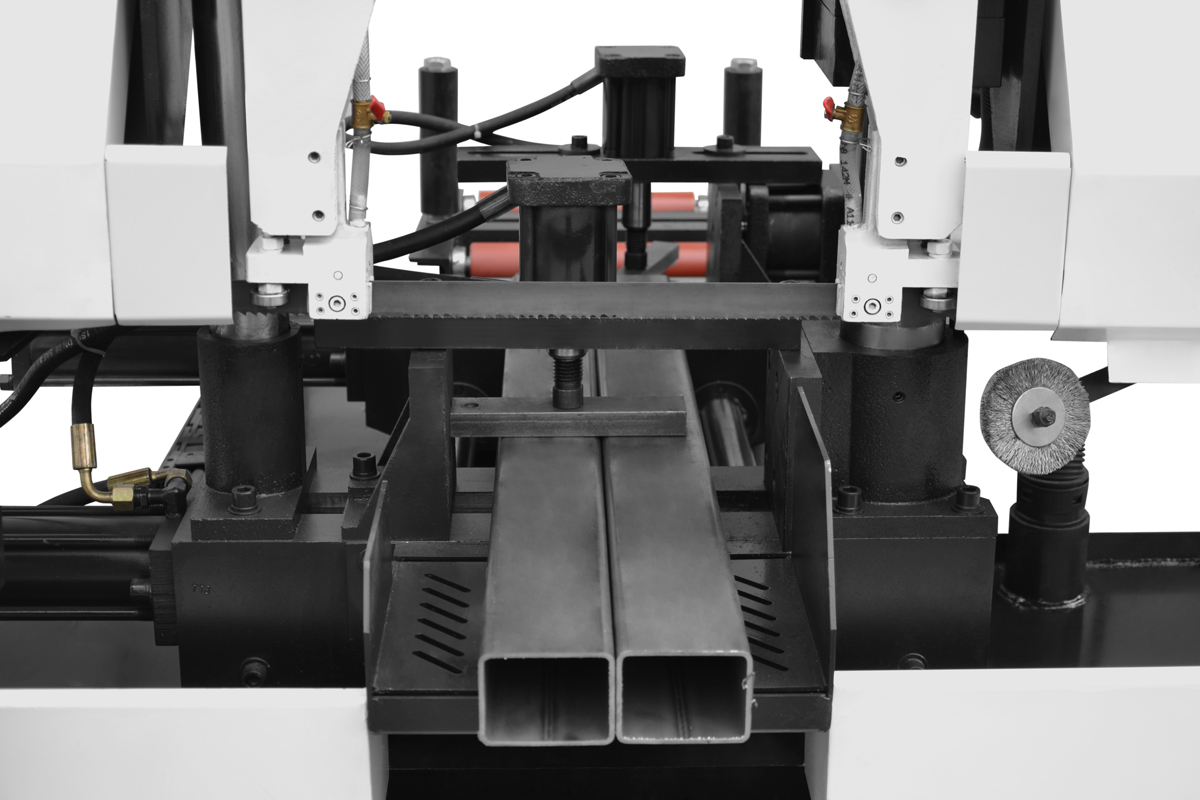Привод режущей ленты на основе двигателя с инверторным управлением обеспечивает плавное регулирование в широком диапазоне скоростей. Гидравлическое натяжение ремня обеспечивает оптимальные условия его эксплуатации. Если пила сломается, станок автоматически остановится. Точное ведение ремня обеспечивают направляющие, состоящие из направляющих подшипников и вставок из спеченного твердого сплава. Подвижная головка, направляющая ленту, регулируется в зависимости от размера разрезаемого материала, что обеспечивает повышенную стабильность работы ленты. Максимальные параметры резки и увеличенный срок службы пилы обеспечиваются системой охлаждения и щеткой для очистки.