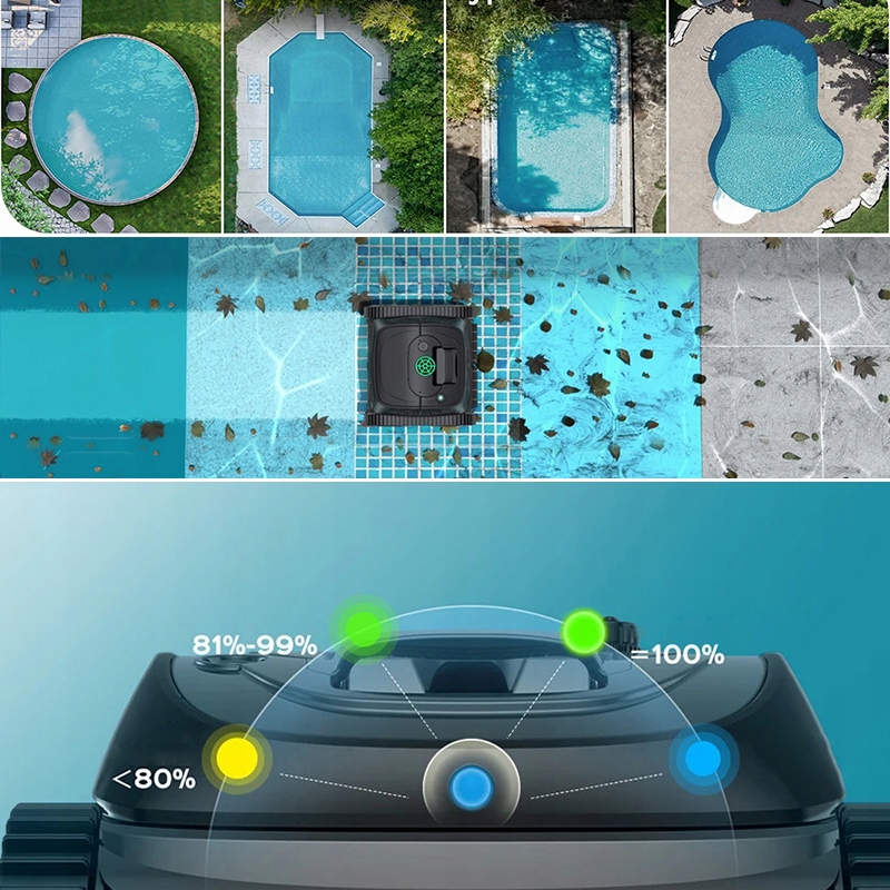 Полная очистка бассейна h2> - Предлагая настройки по умолчанию и универсальные режимы очистки, этот бассейн для вакуума эффективно очищает полы, стены и водные линии бассейна. В режиме по умолчанию он разумно назначает время очистки, начиная с очистки стен, а затем перемещаясь к глубокой очистке дна бассейна.