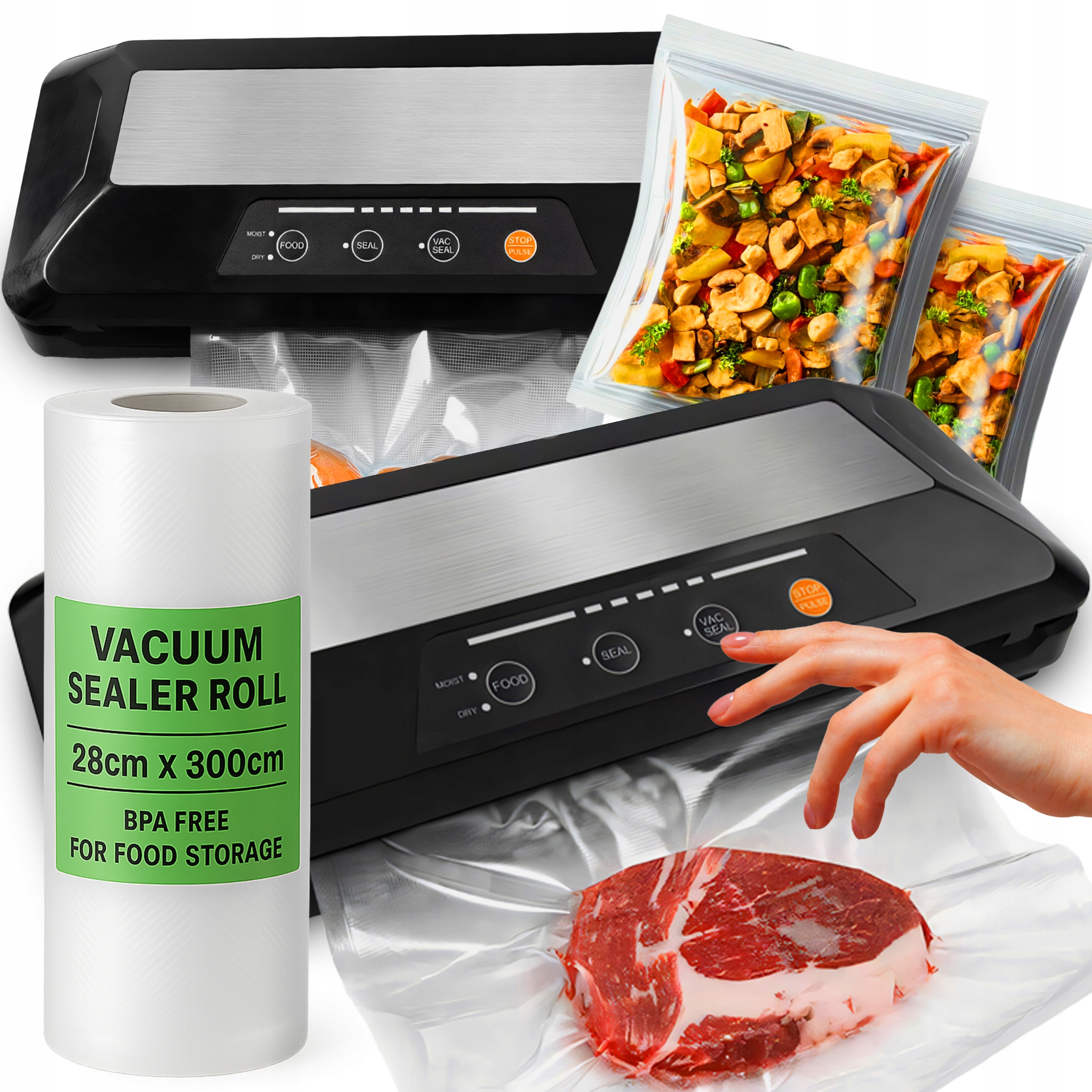 ✍️ Вакуумный упаковщик ☀️ Мощность: 110 Вт ✔️ В комплект входит фольга - 28 см х 3 м ☀️ Максимальная ширина запечатывания: 30 см ✨ Мощность всасывания: 60 КПа ✏️ Корпус из нержавеющей стали ⚡ Встроенный отрезной станок ☀️ Время запаивания: 6-12 с ✔️ Размеры: 402 х 161 х 83 мм ⭐