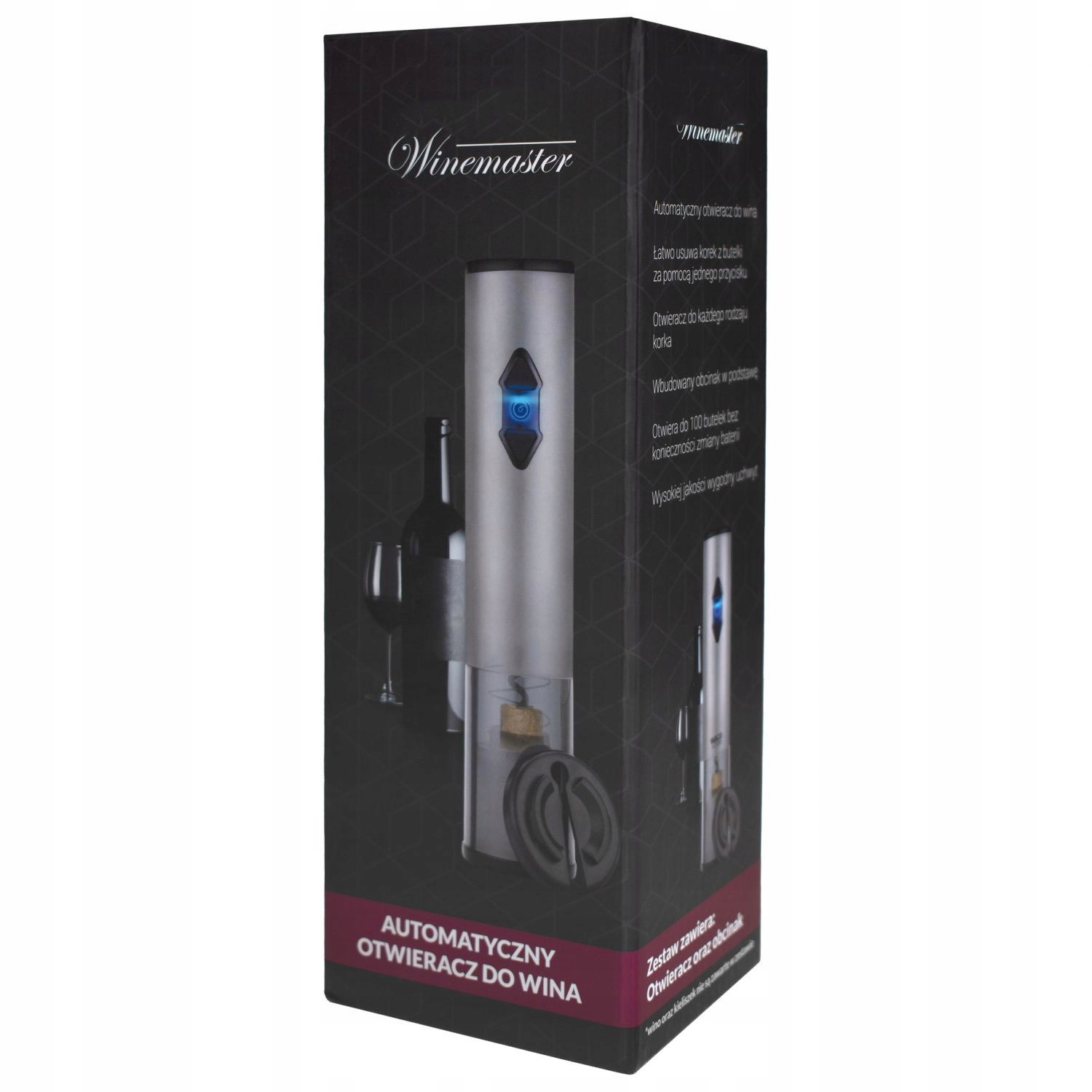 - Легко удаляет пробку из бутылки одной кнопкой.