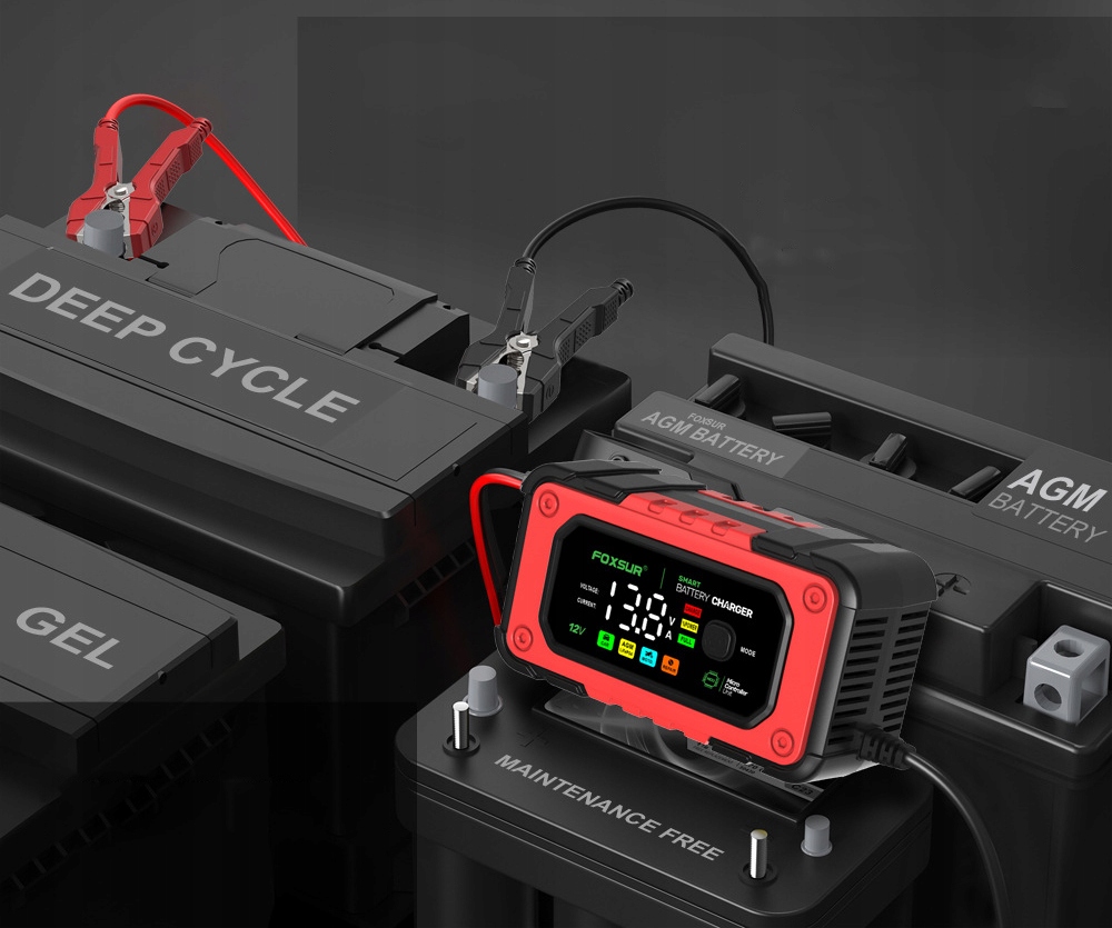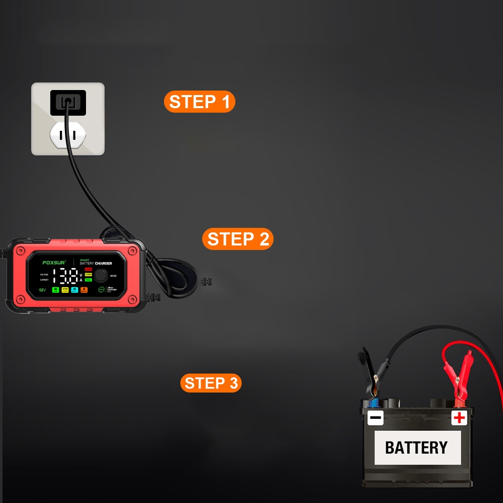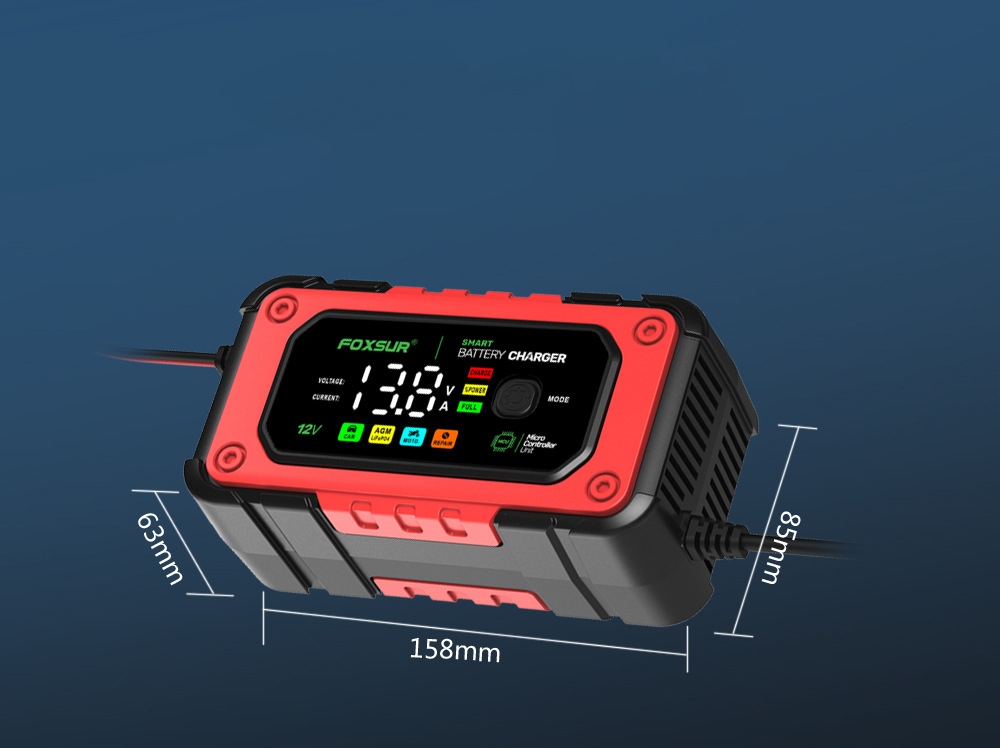 - Автомобильное зарядное устройство подходит для 12В 6А-7А мотоциклов, автомобилей, внедорожников и сухих аккумуляторов, водяных аккумуляторов, свинцово-кислотных аккумуляторов, необслуживаемых аккумуляторов LiFePO4. необслуживаемый аккумулятор LiFePO4.