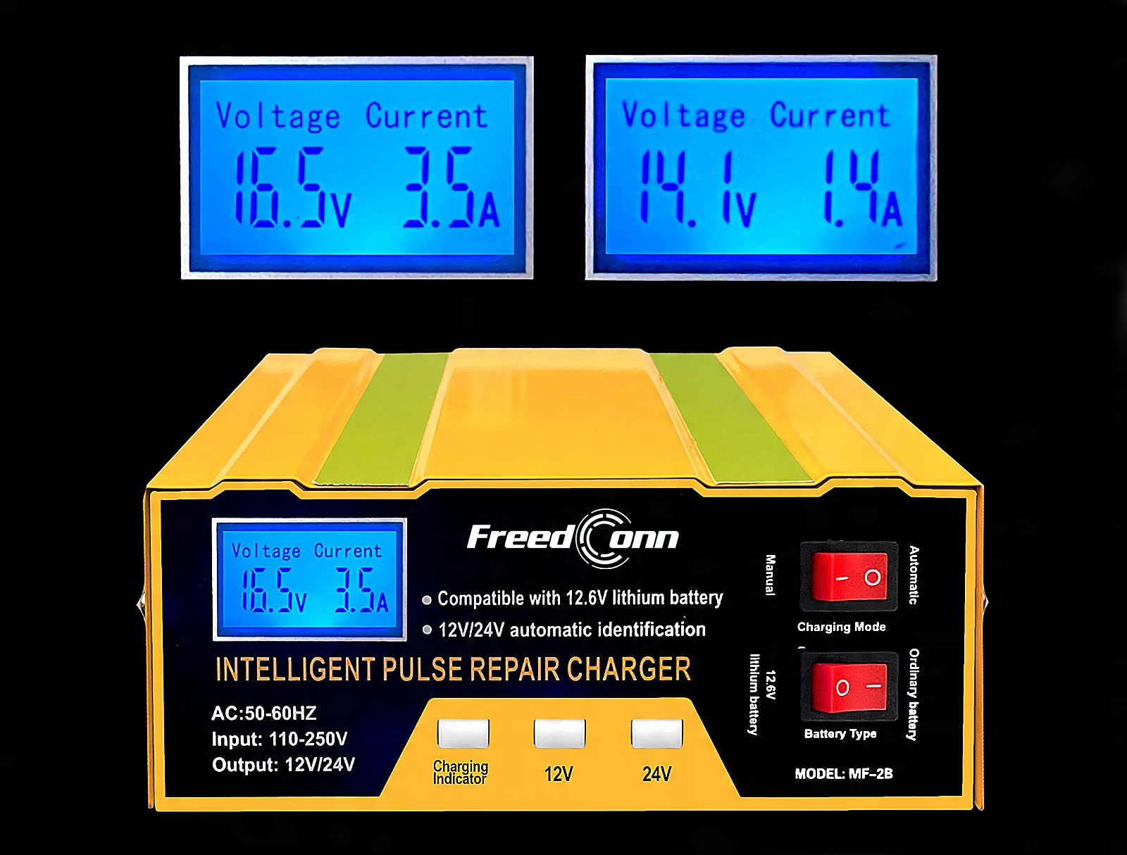 Поскольку зарядное устройство имеет функцию автоматической зарядки, оно идеально работает со свинцово-кислотными аккумуляторами и литиевыми аккумуляторами напряжением 12,6 В.