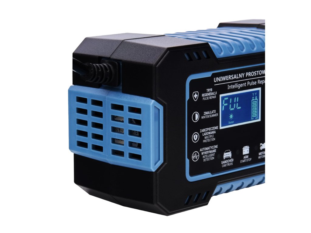 Автоматическое зарядное устройство для аккумуляторов WDS2230 — универсальное устройство, предназначенное для эффективной зарядки аккумуляторов различных типов. Это зарядное устройство работает при напряжении 12 В и максимальном зарядном токе 6 А, что делает его идеальным для использования с автомобильными, мотоциклетными, AGM/Start-Stop и гелевыми аккумуляторами емкостью до 100 Ач. Благодаря встроенным режимам зарядки он позволяет не только выполнять стандартную зарядку, но и восстанавливать старые или глубоко разряженные аккумуляторы. Автоматическая регулировка напряжения в зависимости от температуры окружающей среды обеспечивает безопасную и эффективную зарядку, а ЖК-дисплей предоставляет пользователю информацию о состоянии заряда и других важных параметрах. Высококачественная конструкция обеспечивает долгий срок службы и устойчивость к нормальному износу, что делает это зарядное устройство идеальным для использования в мастерских и дома.