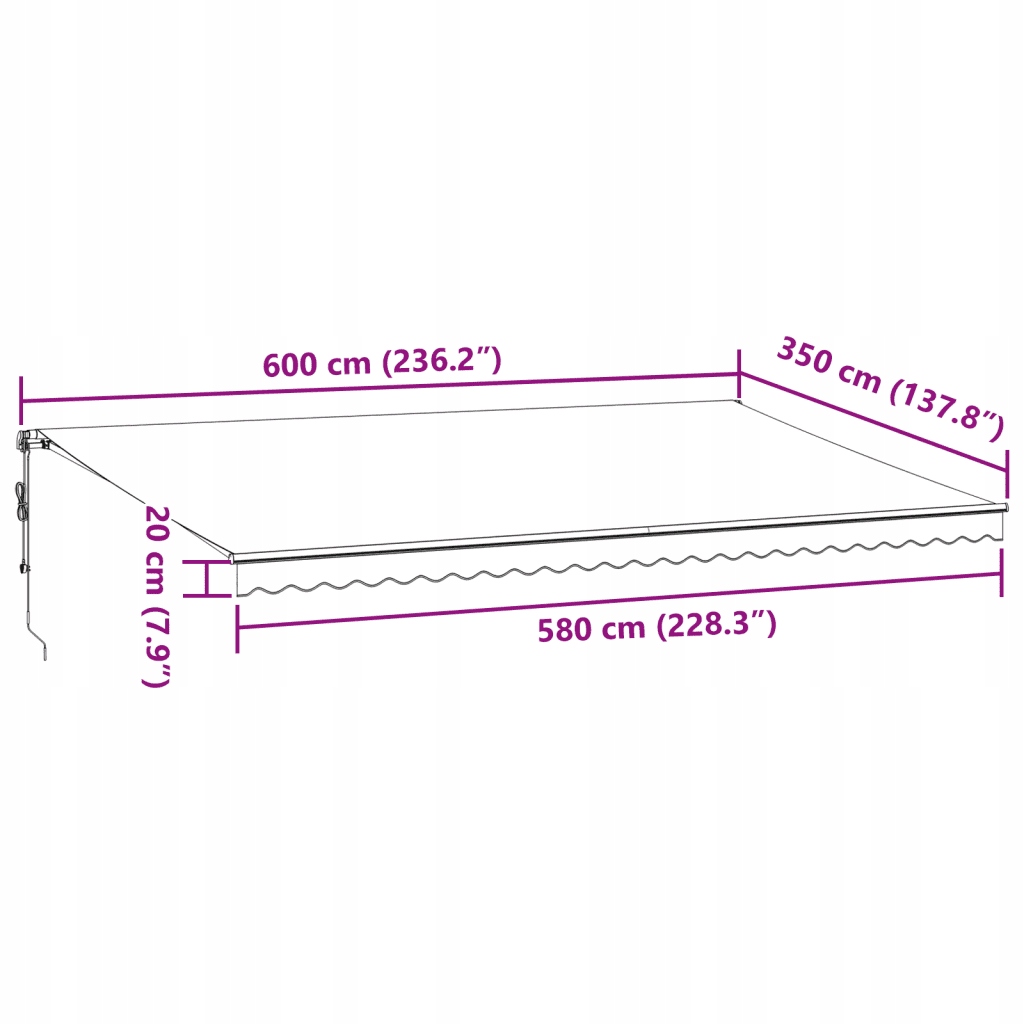 Автоматически свернутый тент, антрацит-белый, 600x350 см.