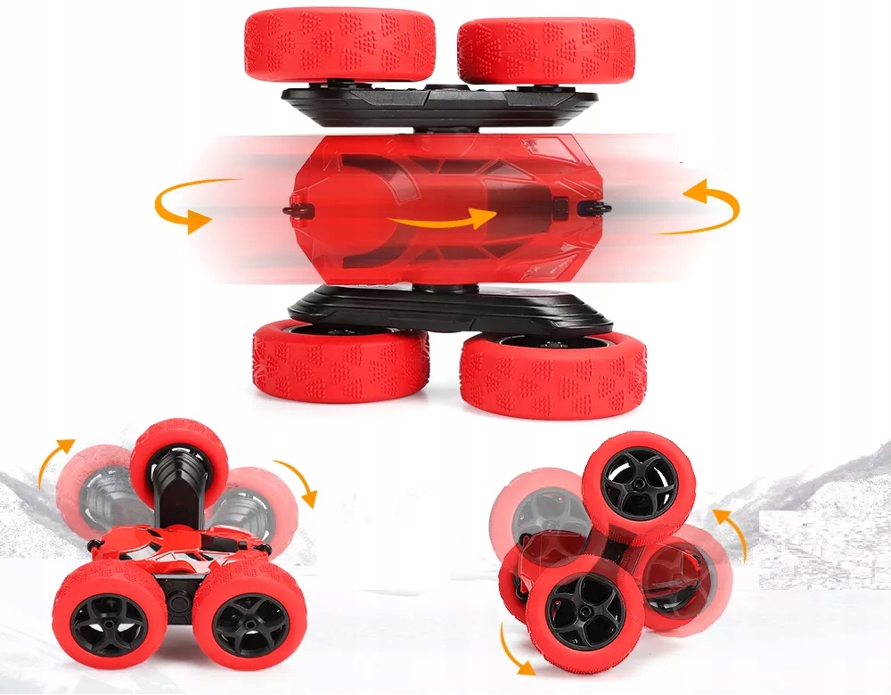 STUNT CAR — это акробатная машина, которая поразит каждого. Чрезвычайно умная и быстрая машина с дистанционным управлением. Автомобиль вращается на 360 градусов вокруг своей оси. Он ездит на 4 или 2 колесах на боку, переворачивается, прыгает, танцует. Отличная машина с полным приводом. Высокое качество. Благодаря специальной конструкции двух независимых параллельных боковых осей с колесами автомобиль предназначен для акробатических занятий. Благодаря небольшим размерам он идеально подходит для игр на улице и дома. Очень прочная конструкция, большие колеса из мягкой резины позволяют изделию отлично работать на любой местности – по асфальту, асфальту, песку, траве и т. д. Беспроблемное управление с помощью пульта, входящего в комплект. Автомобиль питается от аккумулятора, который заряжается с помощью USB-кабеля — который входит в комплект. Продукт развивает ручные навыки.