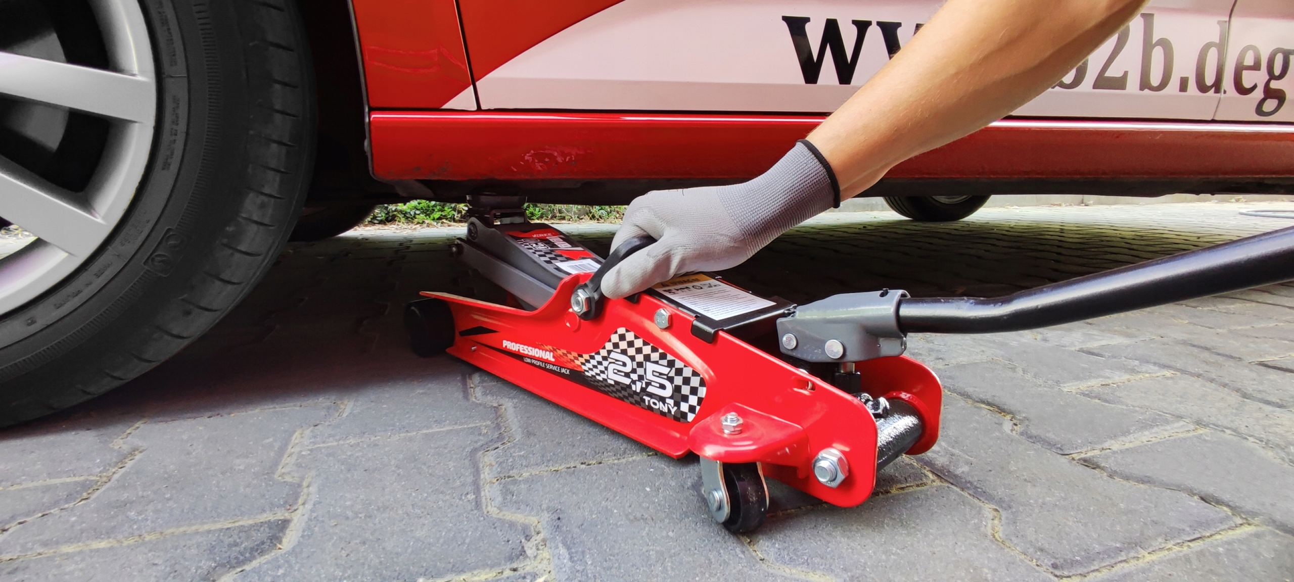 НИЗКОПРОФИЛЬНЫЙ ПОДЪЕМНИК 2,5Т С ВРАЩАЮЩЕЙСЯ РУЧКОЙ ПЛЮС РЕЗИНОВАЯ VERKE PROFI