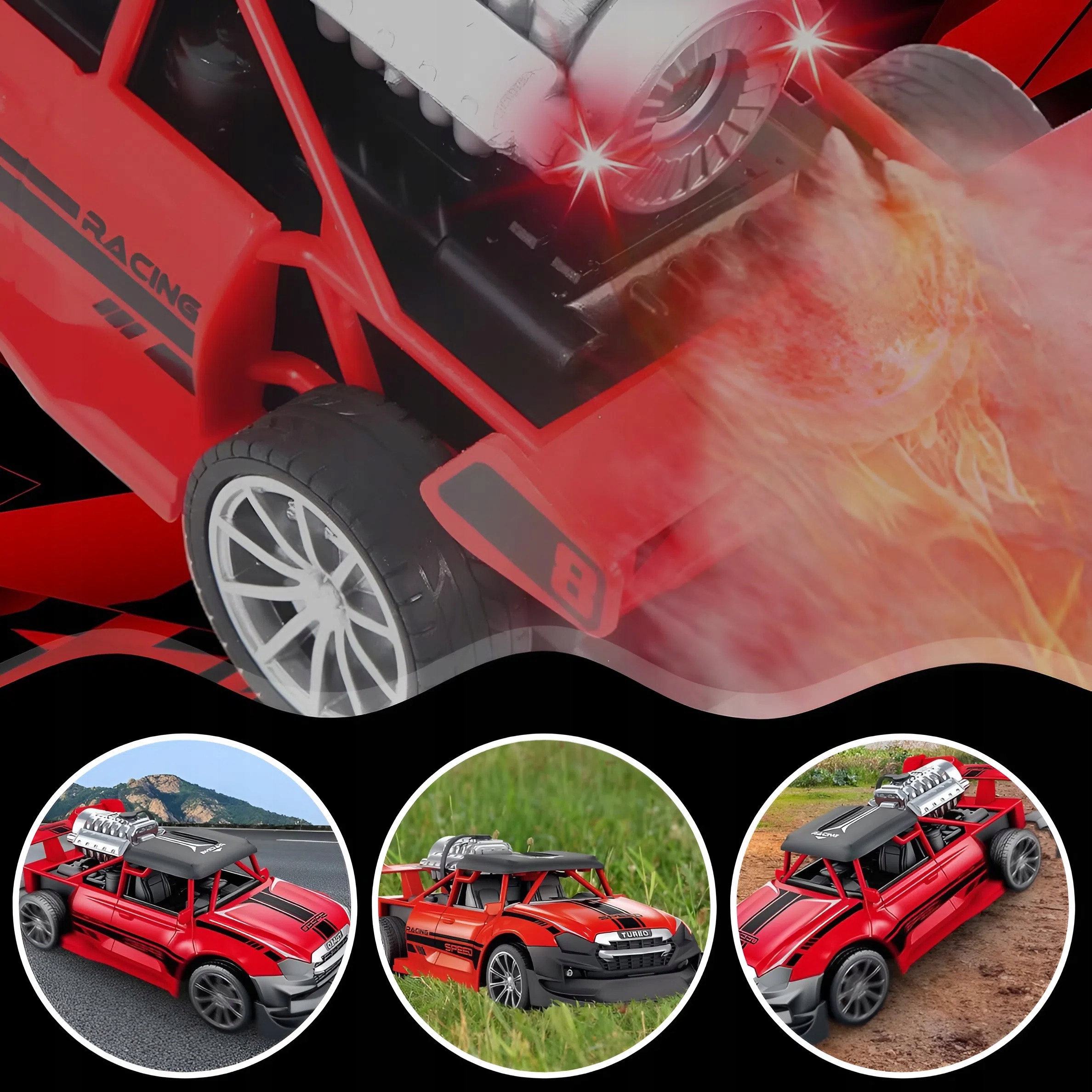 ➡️ НИТРО ЭФФЕКТ - в автомобиле установлен парогенератор, имитирующий дым из выхлопной системы во время движения. Это дает потрясающие визуальные впечатления, особенно в темноте.