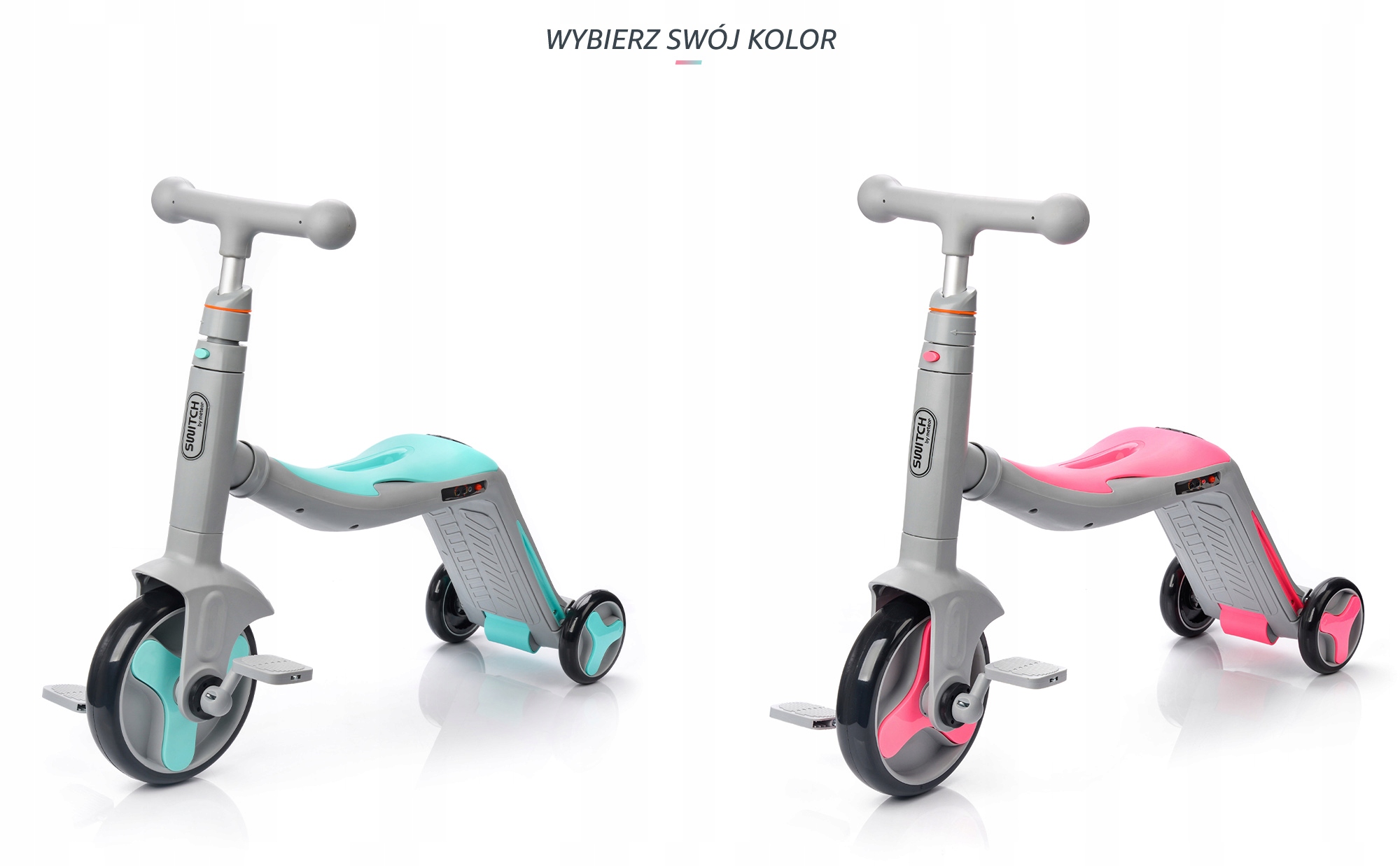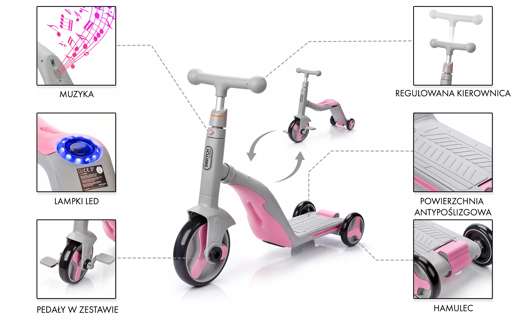 АВТОМОБИЛЬ, ВЕЛОСИПЕД, СКУТЕР, АВТОМОБИЛЬ С ПЕРЕКЛЮЧАТЕЛЕМ МЕТЕОРА, 3 в 1, розовый и серый