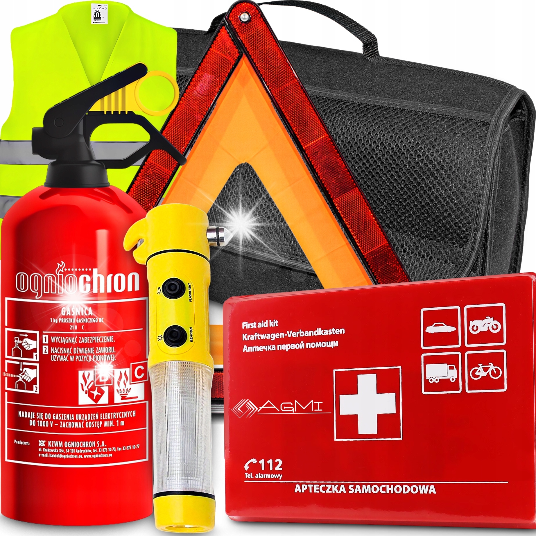 | ПЕРВЫЙ КОМПЛЕКТ | ОГНЕТУШИТЕЛЬ 1 КГ ПОЖАРНАЯ ЗАЩИТА | Светоотражающий жилет | ПРЕДУПРЕЖДАЮЩИЙ ТРЕУГОЛЬНИК | СУМКА-БАГАЖНИК | ФОНАРИК ЖИЗНИ |