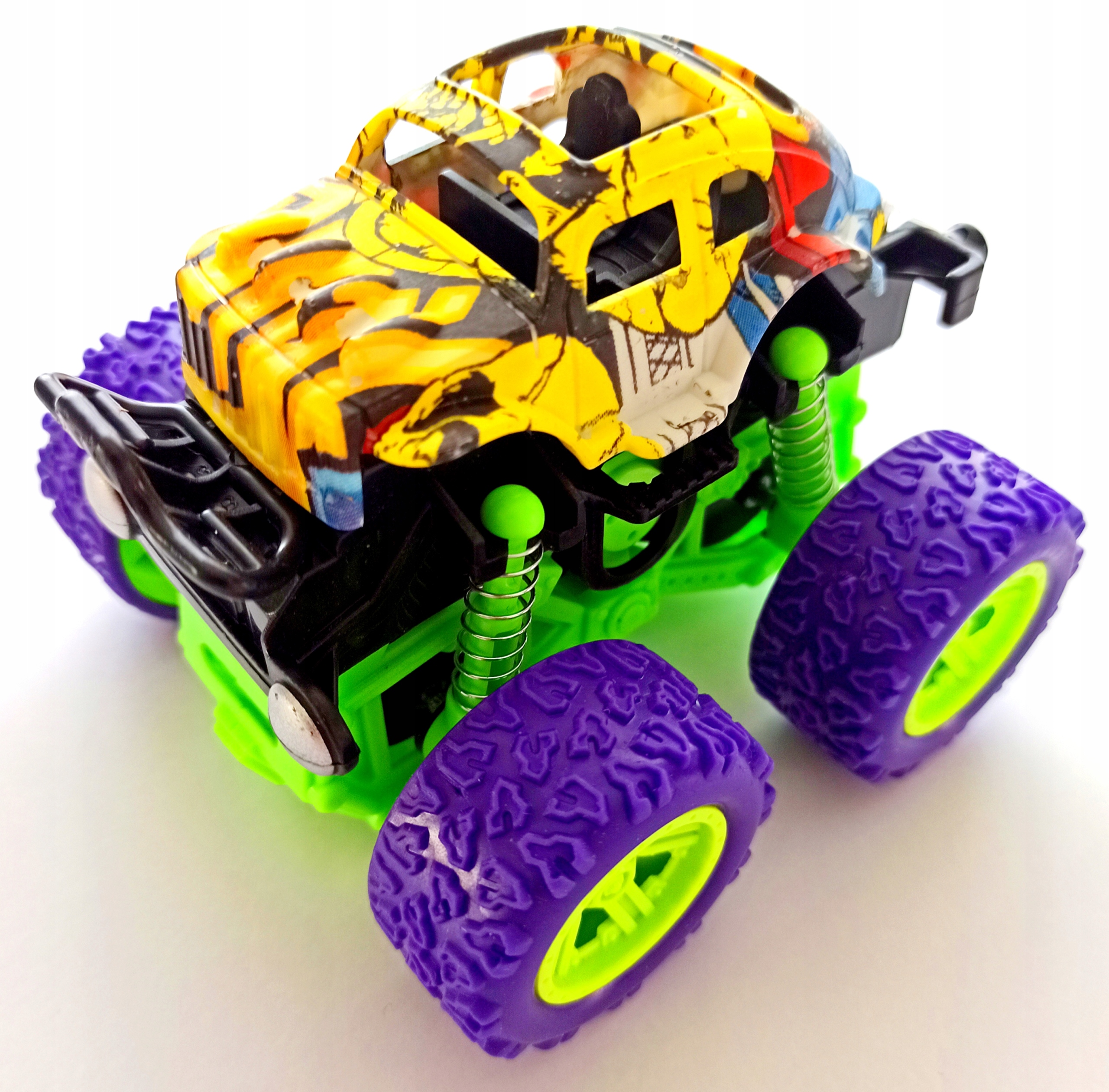 Машина на резиновых колесах с приводом, рессорами и динозавром 1 шт.