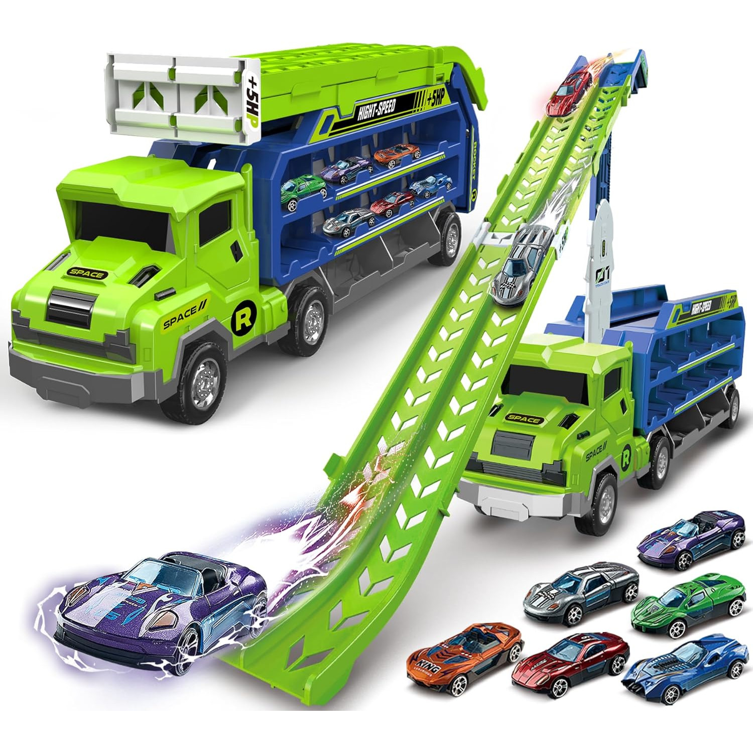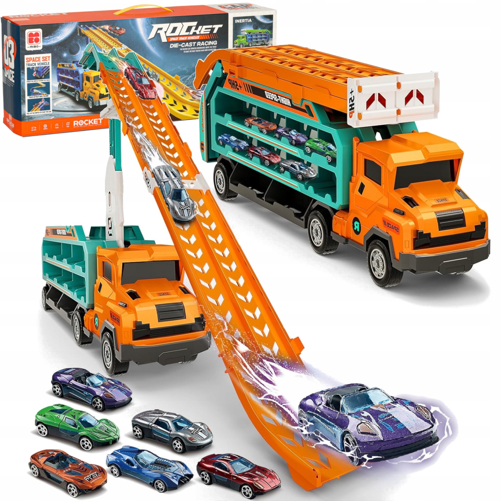 Уникальный транспортный грузовик с автомобильным прицепом b> очарует вашего ребенка. Игрушка также представляет собой автомобиль и трек с слайдом для автомобилей , который создается после развертывания автомобиля. tor/garage/парковка предлагает много фантастического веселья, автомобилей, гонок, слайдов или безопасного транспорта автомобилей в каютах, предназначенных для этого с обеих сторон грузовика. Всего 20 мест для транспортировки пружин, , так что ребенок также может перевозить другие автомобили из своей коллекции.