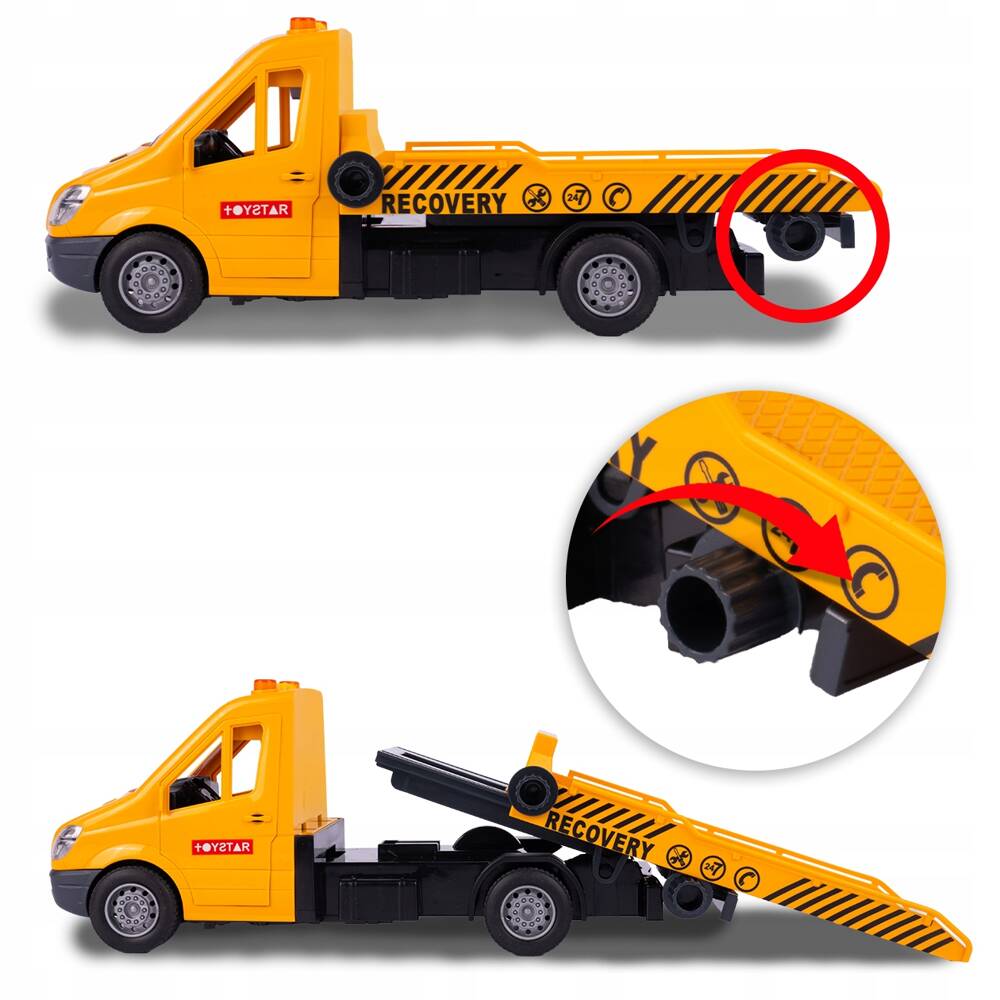 Авторальный автомобиль характеризуется чрезвычайно реалистичным внешним видом. Желтый цвет эвакуатора и красного спортивного автомобиля делает веселье еще более захватывающим. Дети могут играть сцены из повседневной жизни, имитируя работу настоящих эвакуаторов. p>