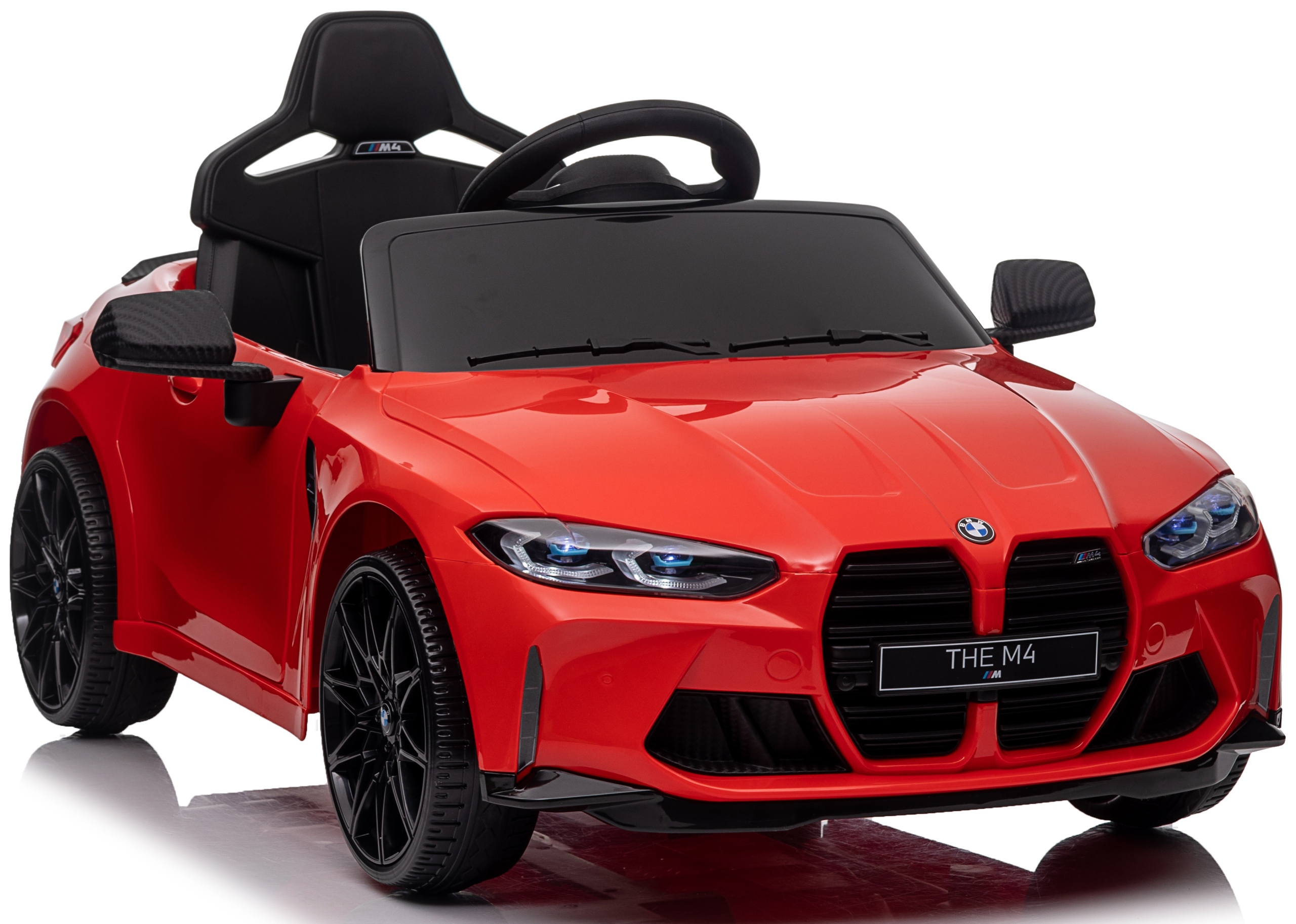 BMW Автомобиль M4 - это аккумулятор по лицензии BMW. Автомобиль имеет открытие двери с обеих сторон. Привод обеспечивается двумя мощными электродвигательными двигателями каждые 45 Вт, питается на батареи 12 В. Автомобиль оснащен звуковыми эффектами, запущенными с кнопками, входом в MP3-плеер, регулятором громкости, светодиодными светильниками, мягким эко-косой сиденьем, пенопластовыми колесами EVA. 3 скорости перемещения доступны. Безопасные уроки вождения предоставляются пультом дистанционного управления дистанционного управления 2,4 г, что дает родителю полный контроль над транспортным средством.